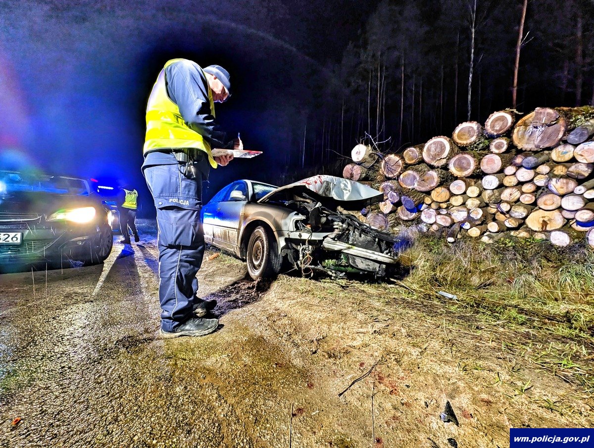 Policjanci otrzymali zgłoszenie dotyczące groźnego zdarzenia drogowego, do którego doszło w Błąkałach. Samochód marki Volkswagen uderzył w drzewo. Mundurowi wyjaśniają okoliczności tego zdarzenia.