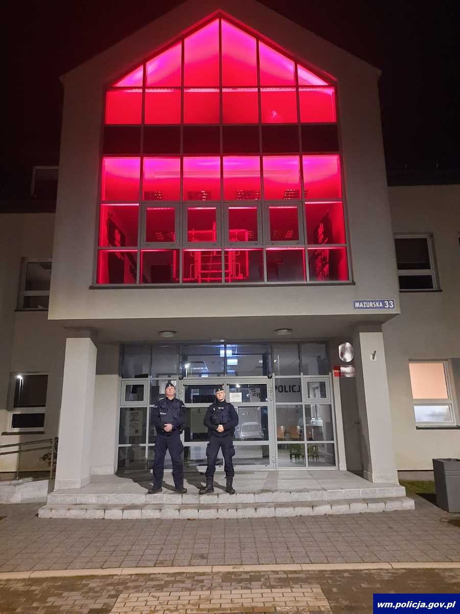 Jak co roku wśród aktywnych uczestników akcji znajdują się również policjanci. By dać temu wyraz też podświetlają swoje budynki czerwonym światłem na kilka chwil. Tak jak miało to miejsce m.in. w Komendzie Wojewódzkiej Policji w Olsztynie oraz niektórych jednostkach powiatowych. Ale aktywność policjantów na tym polu nie ogranicza się tylko do czerwonego światła. To również uczestnictwo w wydarzeniach promujących przeciwstawianie się przemocy, a także codzienna służba na rzeczy tych, którzy potrzebują wsparcia i ochrony.