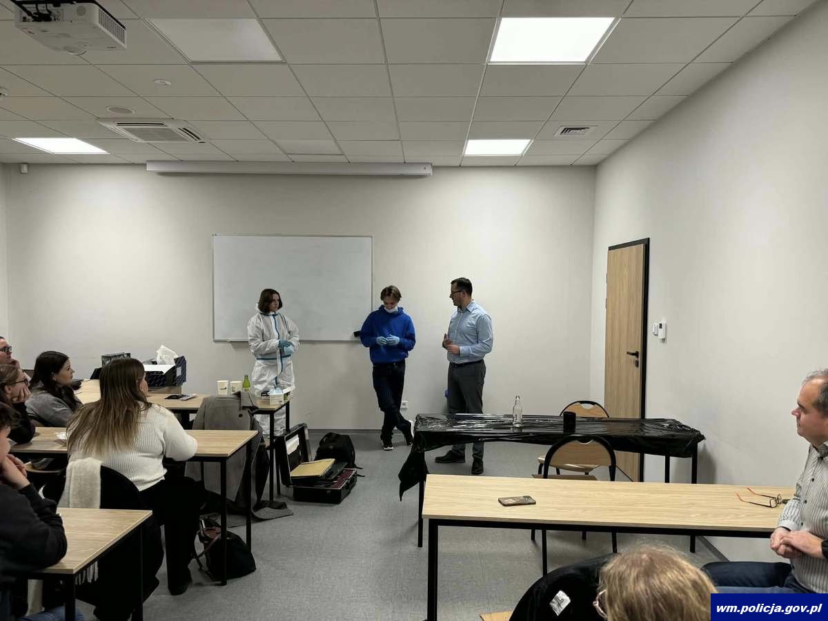 Szef olsztyńskich techników kryminalistyki na zajęciach ze studentami UWM