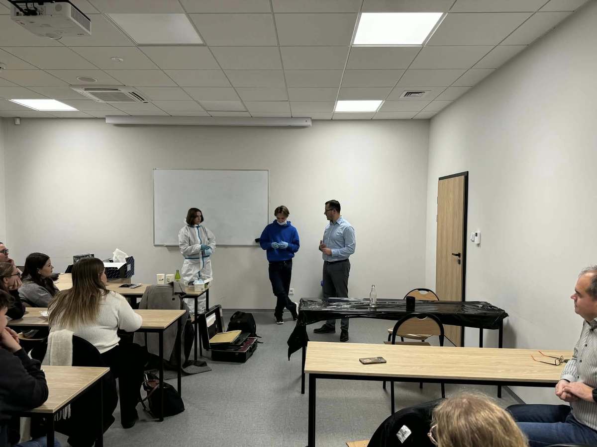 Kierownik Referatu Techniki Kryminalistycznej olsztyńskiej komendy miejskiej podkom. Tobiasz Wiśniewski gościł na zajęciach Koła Naukowego Kryminalistyki „Na Tropie” tworzonego przez studentów UWM w Olsztynie. Tematem zajęć były zagadnienia związane z prowadzeniem oględzin miejsca zdarzenia o charakterze kryminalnym.