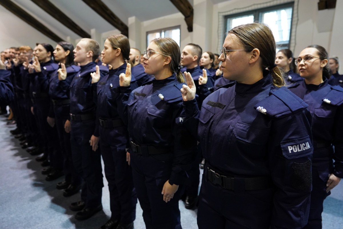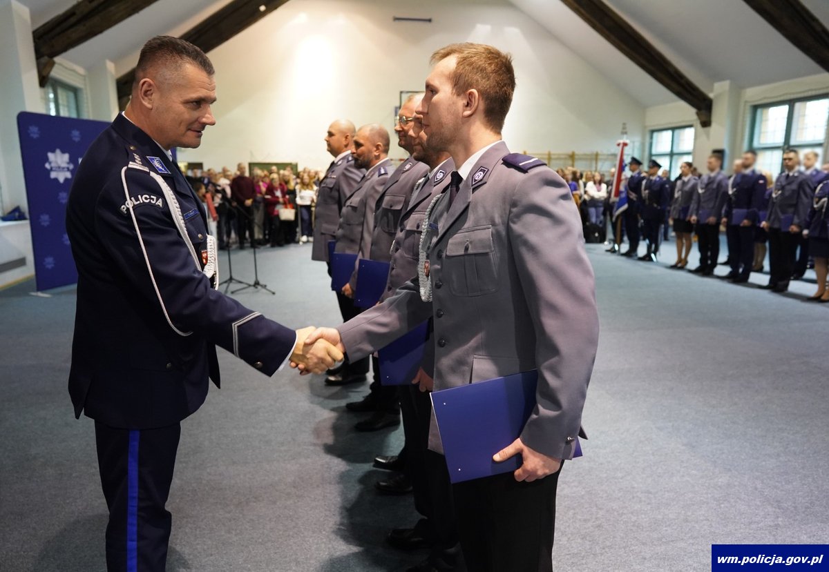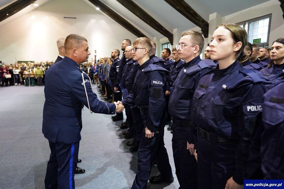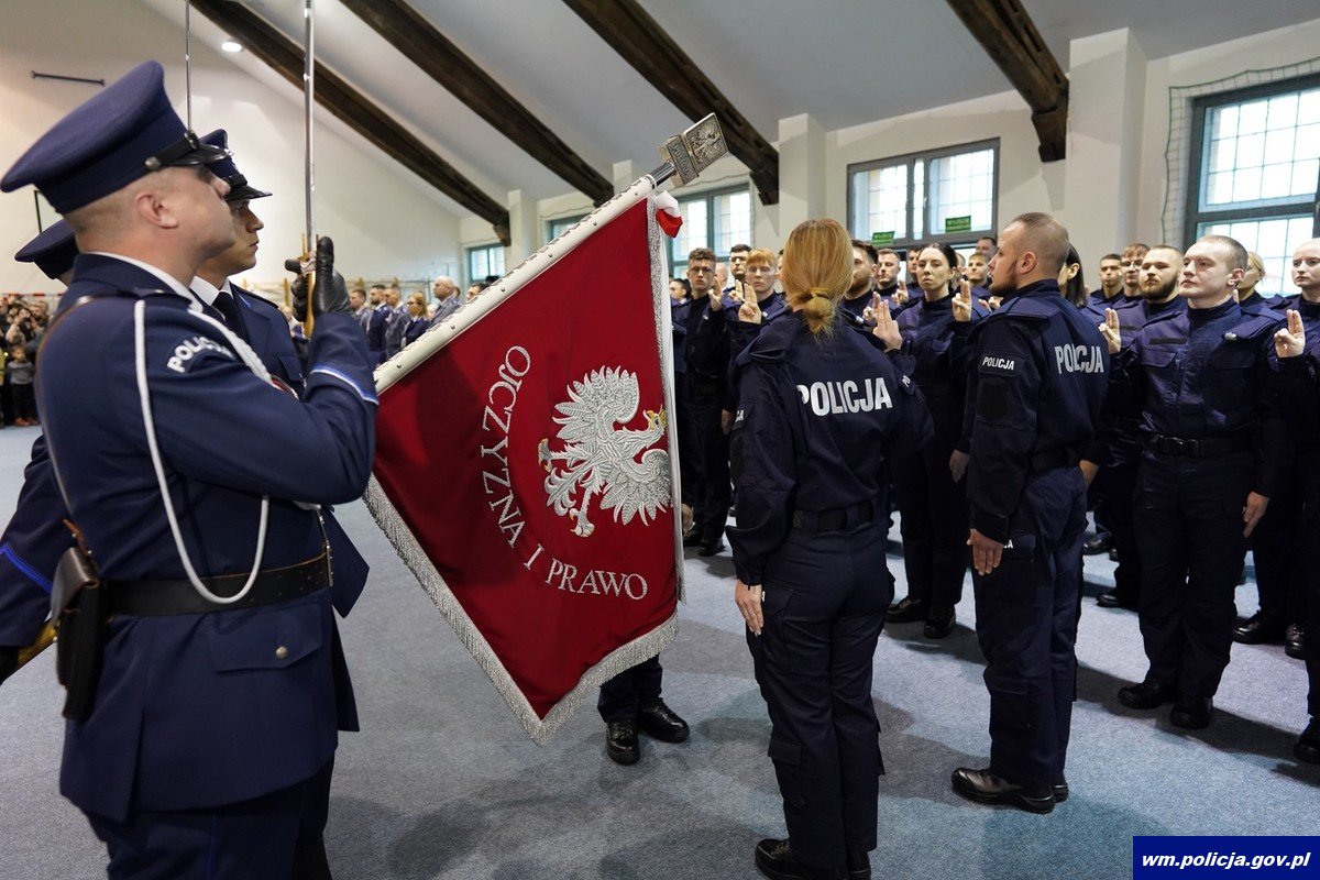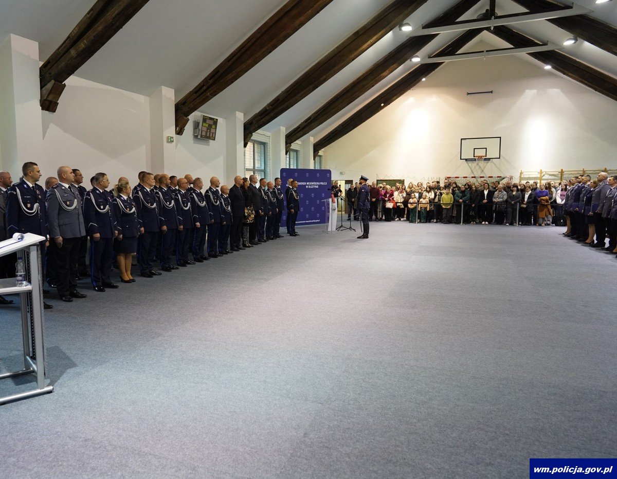 To już jedenaste w 2025 roku ślubowanie nowo przyjętych policjantów w garnizonie warmińsko-mazurskim. W sali Oddziału Prewencji Policji w Olsztynie 47 policjantek i policjantów w obecności swoich bliskich, nowych przełożonych oraz zaproszonych na uroczystość gości ślubowało „wiernie służyć Narodowi”. Uroczystości towarzyszyło także wręczenie medali, odznaczeń oraz aktów mianowania na wyższe stopnie służbowe.