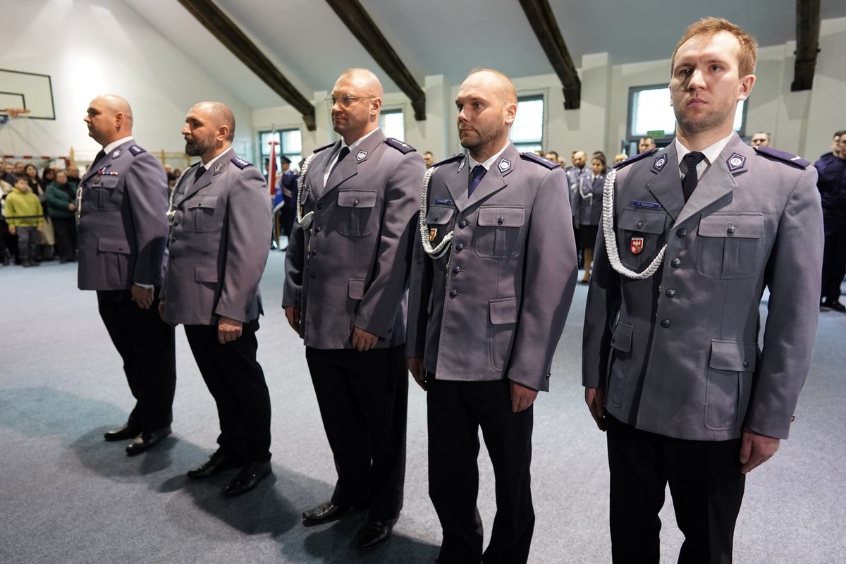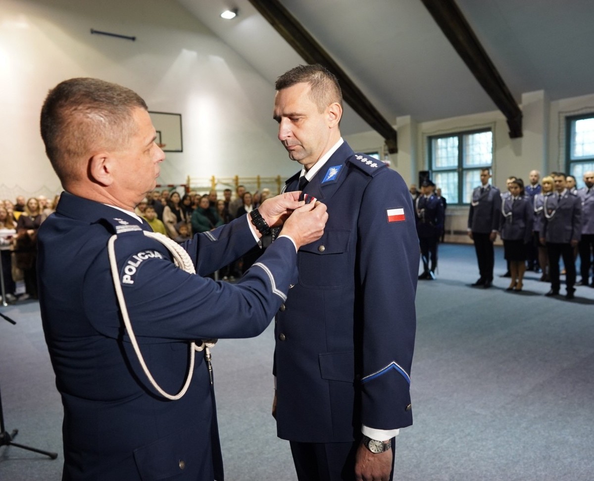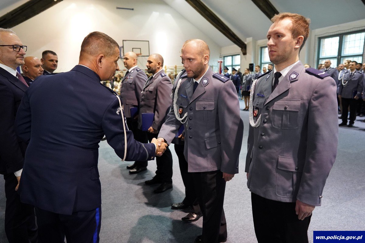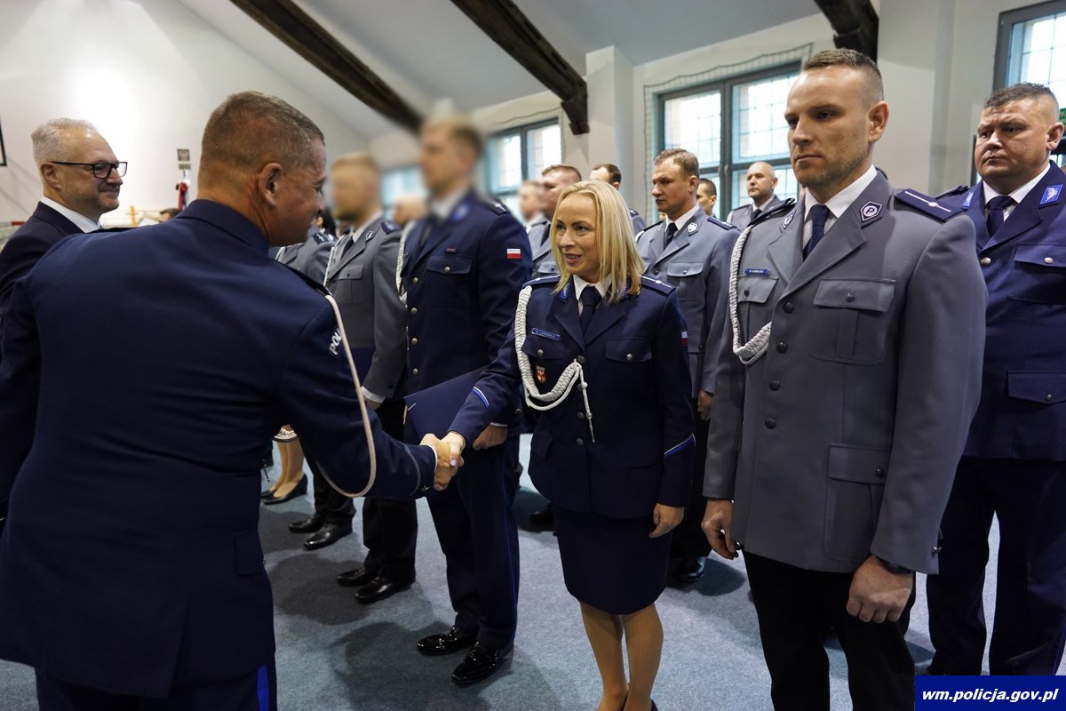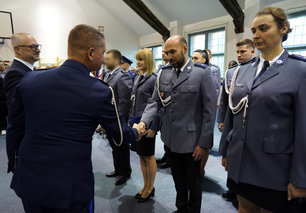 Piątkowa uroczystość była też okazją do wręczenia awansów na wyższe stopnie służbowe policjantom, którzy ukończyli szkolenia zawodowe aspiranckie, zdając pozytywnie egzaminy końcowe. Tym razem awanse na stopień młodszego aspiranta odebrało 35 funkcjonariuszy.