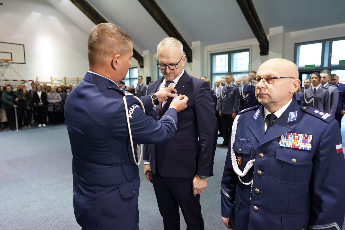 Podczas ślubowania wręczono wyjątkowe wyróżnienie. Radosław Król Wojewoda Warmińsko-Mazurski oraz mł. insp. Sławomir Koniuszy Przewodniczący Warmińsko-Mazurskiego Zarządu Wojewódzkiego NSZZ Policjantów w Olsztynie otrzymali odznakę okolicznościową „Za Zasługi dla Komendy Wojewódzkiej Policji w Olsztynie”. Odznaczeniem wyróżnione zostają osoby oraz instytucje szczególnie zaangażowane we wspieranie statutowych działań Komendy Wojewódzkiej Policji w Olsztynie lub podległych jednostek organizacyjnych.