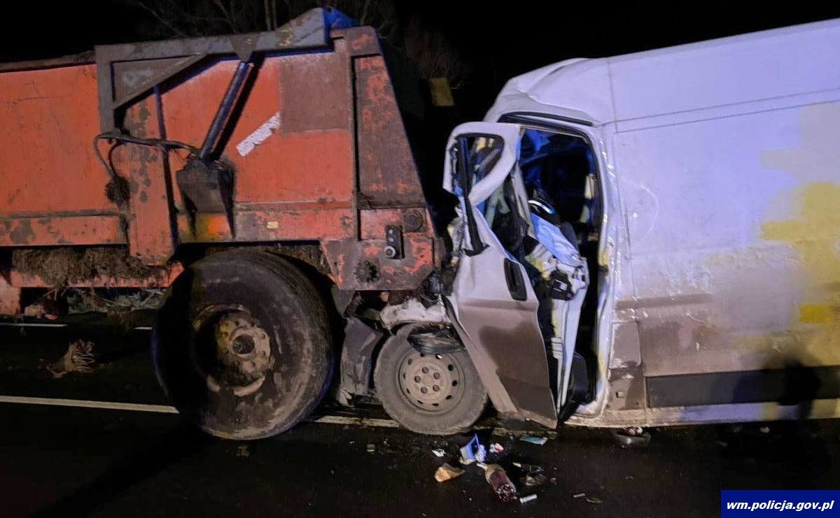 Policjanci pracowali na miejscu wypadku drogowego, do którego doszło na trasie Drygały – Ełk. Ze wstępnych ustaleń funkcjonariuszy wynika, że kierujący pojazdem marki Fiat Ducato najprawdopodobniej nie zachował bezpiecznej odległości od poprzedzającego go pojazdu i uderzył w przyczepę ciągnika rolniczego. Jedna osoba trafiła do szpitala. To kierowca busa. Policjanci wyjaśniają przyczyny i okoliczności wypadku.
