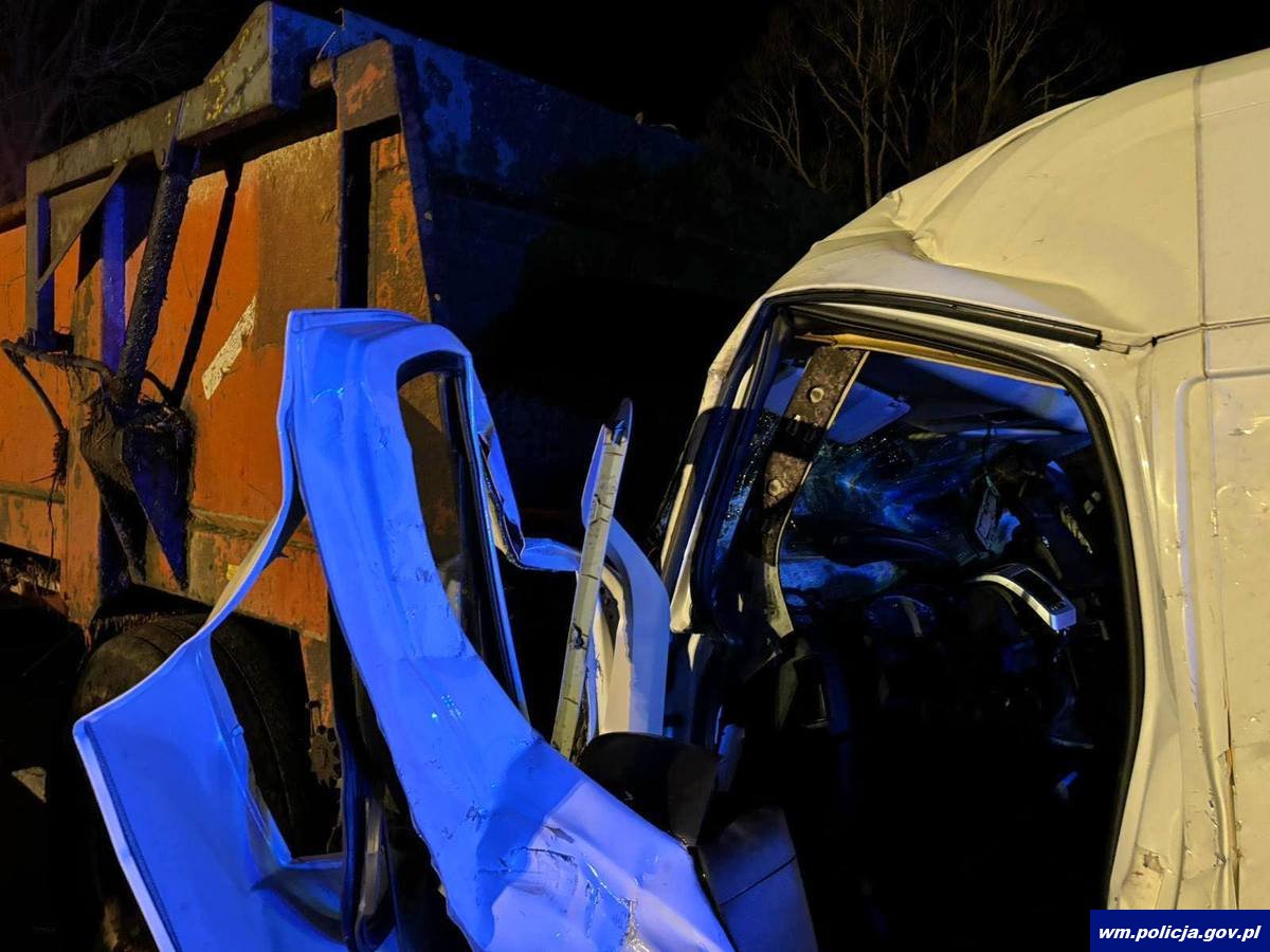 Ze wstępnych ustaleń, policjantów pracujących na miejscu zdarzenia wynika, że oba pojazdy jechały od strony Białej Piskiej w kierunku Ełku. Kierujący ciągnikiem rolniczym z naczepą wyjechał z pola na drogę wojewódzką. Po przejechaniu krótkiego odcinka chciał skręcić w lewo w drogę dojazdową do posesji. Musiał jednak ustąpić pierwszeństwa pojazdom jadącym z przeciwka. W tym momencie w tył naczepy uderzył jakiś pojazd. Był to samochód marki Fiat Ducato, którym kierował 22-letni mieszkaniec Ełku. W wyniku zderzenia kierowca busa został zakleszczony w pojeździe. Trafił do szpitala. Kierujący ciągnikiem to 23-letni mieszkaniec gminy Biała Piska. Obaj kierowcy byli trzeźwi.