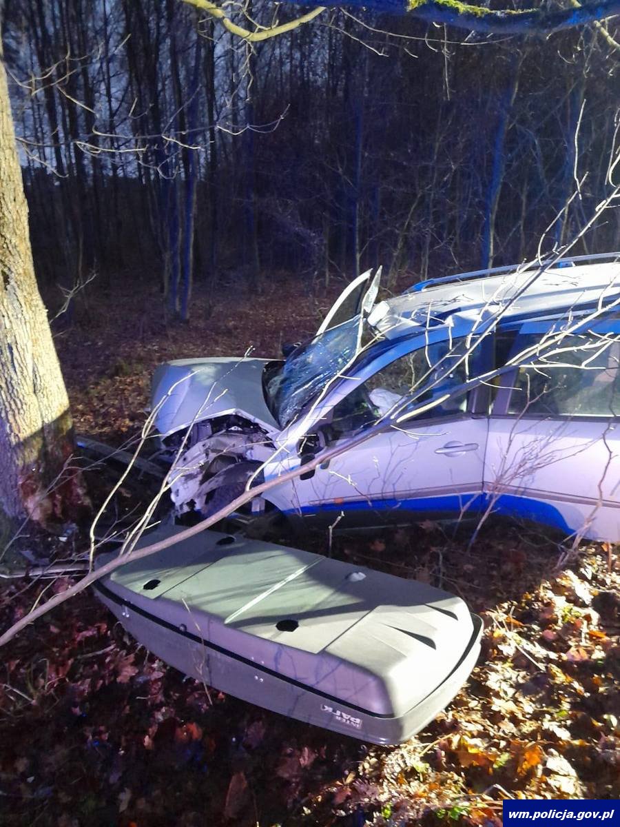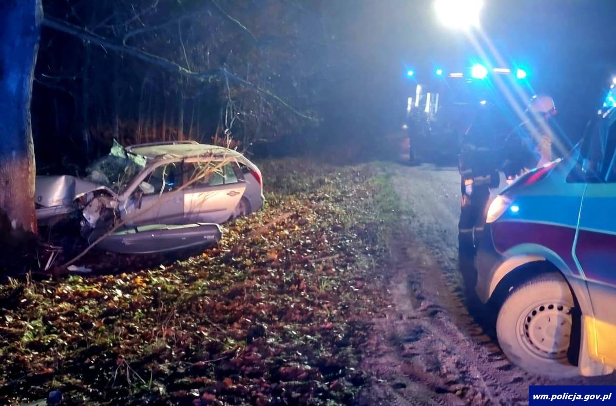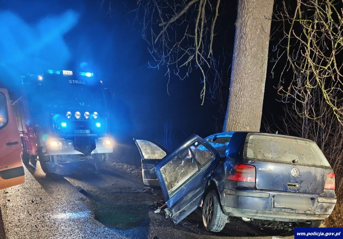 Do tragicznego w skutkach zdarzenia doszło w sobotę (13.12.2025) w nocy w powiecie elbląskim w miejscowości Rejsyty. Kierujący osobówką, 40-letni mężczyzna, z nieznanych na ten moment przyczyn uderzył w przydrożne drzewo. Kierujący oraz jego 51-letni pasażer zginęli na miejscu. Drugi pasażer, 22-latek z ciężkimi obrażeniami trafił do szpitala. Sprawdzenie w policyjnych systemach informatycznych wykazało, że 40-latek nie posiadał uprawnień do kierowania pojazdami.