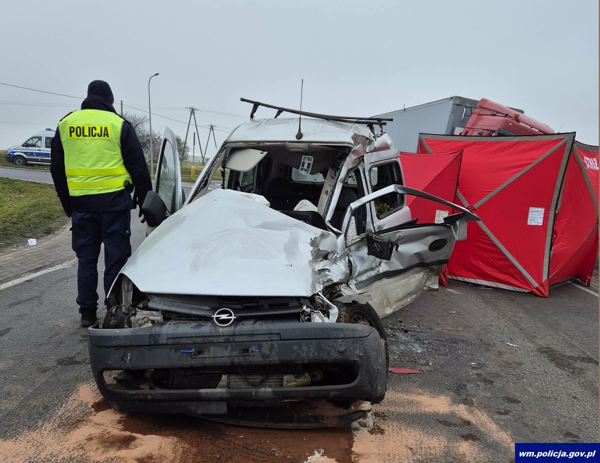 Do tego najtragiczniejszego zdarzenia doszło we wtorek (16.12.2025 r.) kilka minut po godzinie 9:00 na drodze krajowej nr 15 w miejscowości Lubawa. Według wstępnych ustaleń funkcjonariuszy 60-latka kierująca oplem nie ustąpiła pierwszeństwa przejazdu prawidłowo jadącej ciężarówce drogą krajową nr 15 i doprowadziła do zderzenia bocznego między pojazdami. Mieszkanka powiatu działdowskiego w wyniku poniesionych obrażeń zmarła. Natomiast pasażerowie opla z poważnymi obrażeniami zostali przetransportowani do szpitali.
