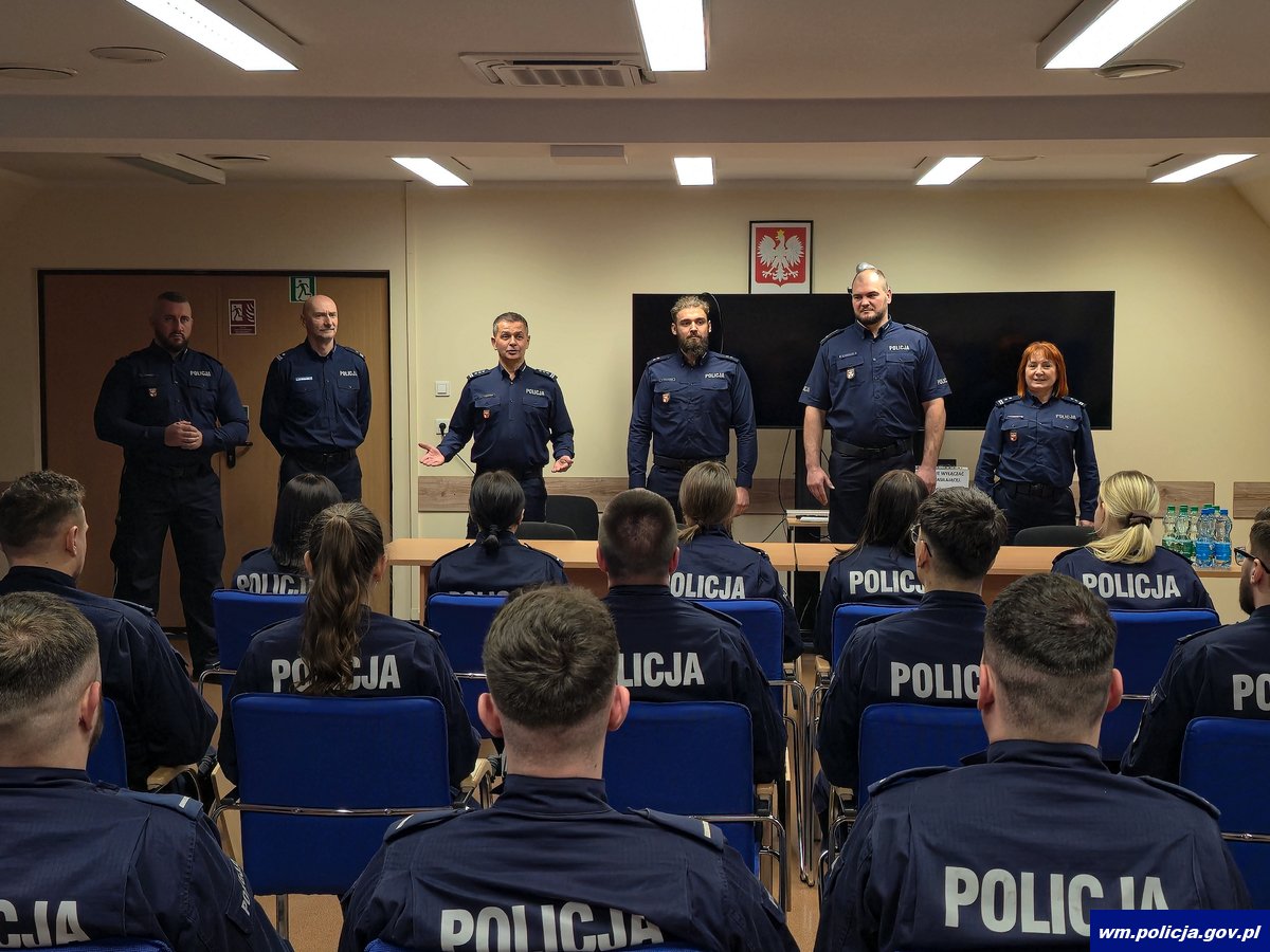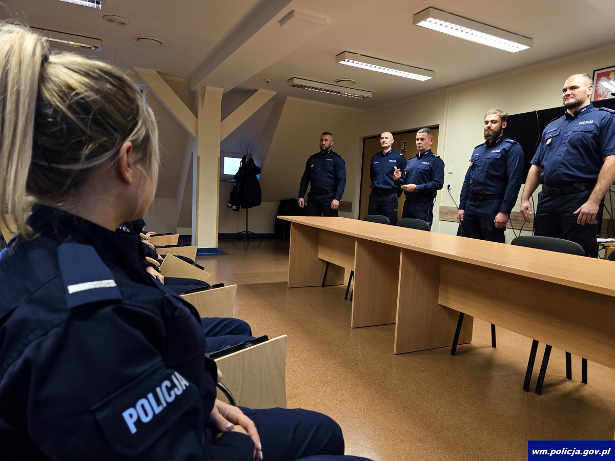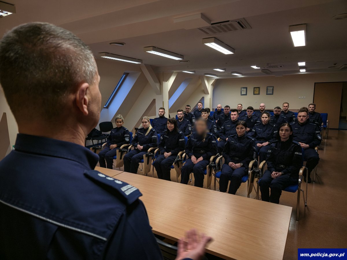 Z gronem funkcjonariuszy z garnizonu warmińsko-mazurskiego w piątek (19.12.2025) na zakończeniu szkolenia spotkał się w obecności kadry szkoleniowej Komendant Wojewódzki Policji w Olsztynie insp. Mirosław Elszkowski. Szef warmińsko-mazurskich policjantów pogratulował funkcjonariuszom zdania egzaminu i jednocześnie życzył kolejnych awansów oraz policyjnego szczęścia na ich ścieżce kariery.