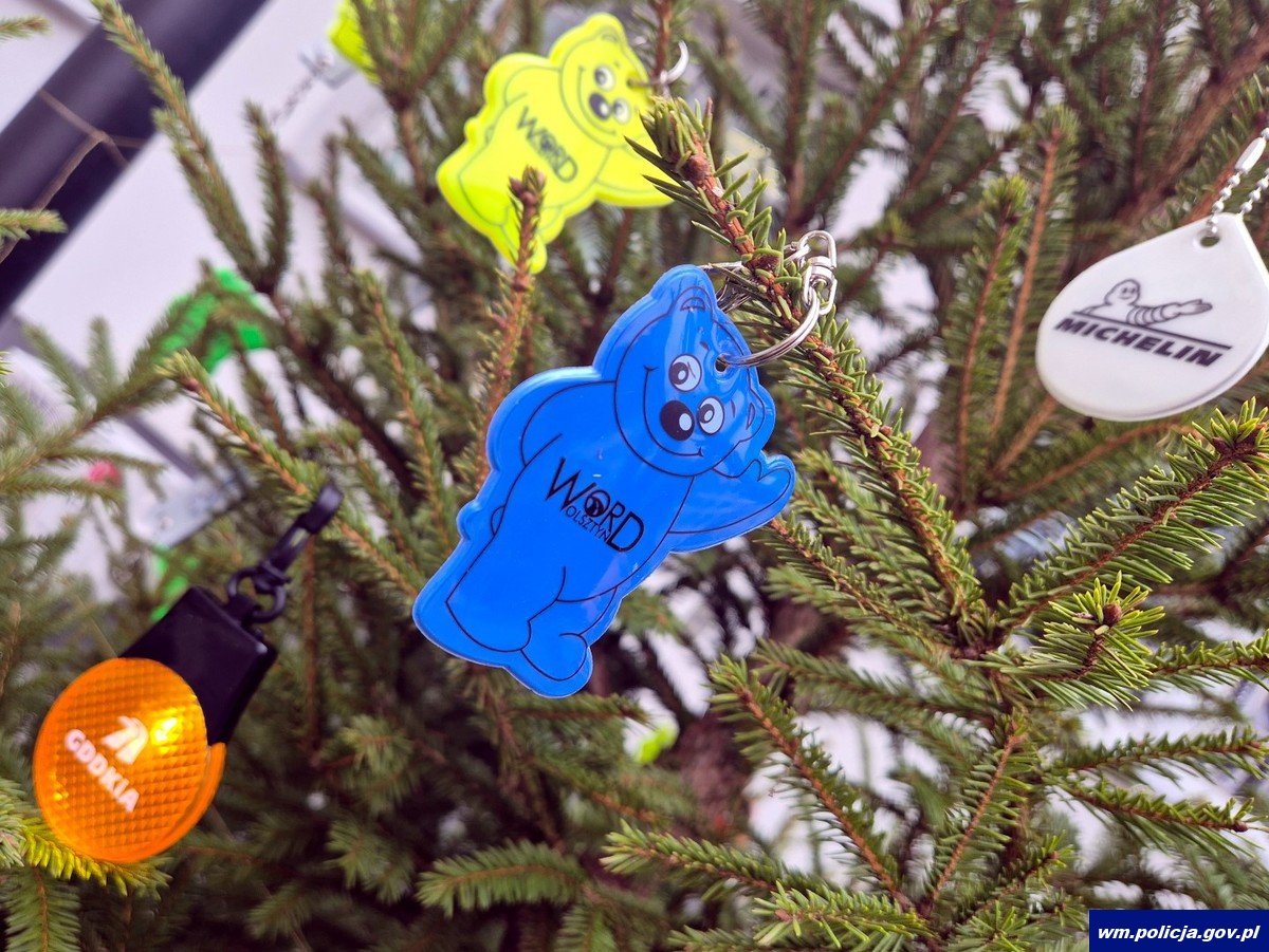 Odblaskowa choinka stanęła w poniedziałek (22.12.2025) przed budynkiem Komendy Wojewódzkiej Policji w Olsztynie. Każda osoba, która potrzebuje takiego odblasku, bo jeszcze go nie ma albo potrzebuje go ktoś z jej bliskich, może podejść do drzewka i zupełnie bezkarnie wziąć sobie taką "ozdobę". Musi tylko spełnić jeden warunek! Odblask musi od razu przypiąć sobie do kurtki lub torby albo jak najszybciej przekazać go osobie, której ta „ozdoba” się przyda. Akcja potrwa do momentu, aż z choinki znikną wszystkie odblaski.