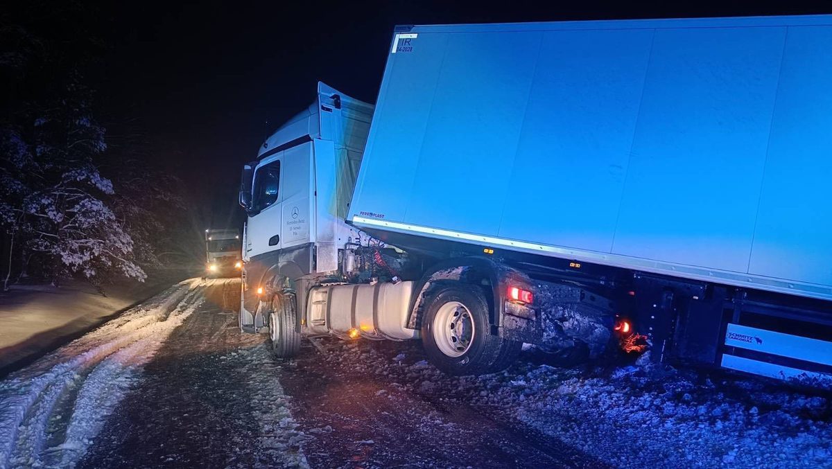 Funkcjonariusze interweniowali między innymi w środę (31.12.2025) rano na S51 w okolicach Gryźlin – tam ciężarówka zablokowała oba pasy ruchu w kierunku Warszawy. Podobna sytuacja miała miejsce tego samego dnia późnym popołudniem w miejscowości Świątki, gdzie pojazd ciężarowy utknął na rondzie.