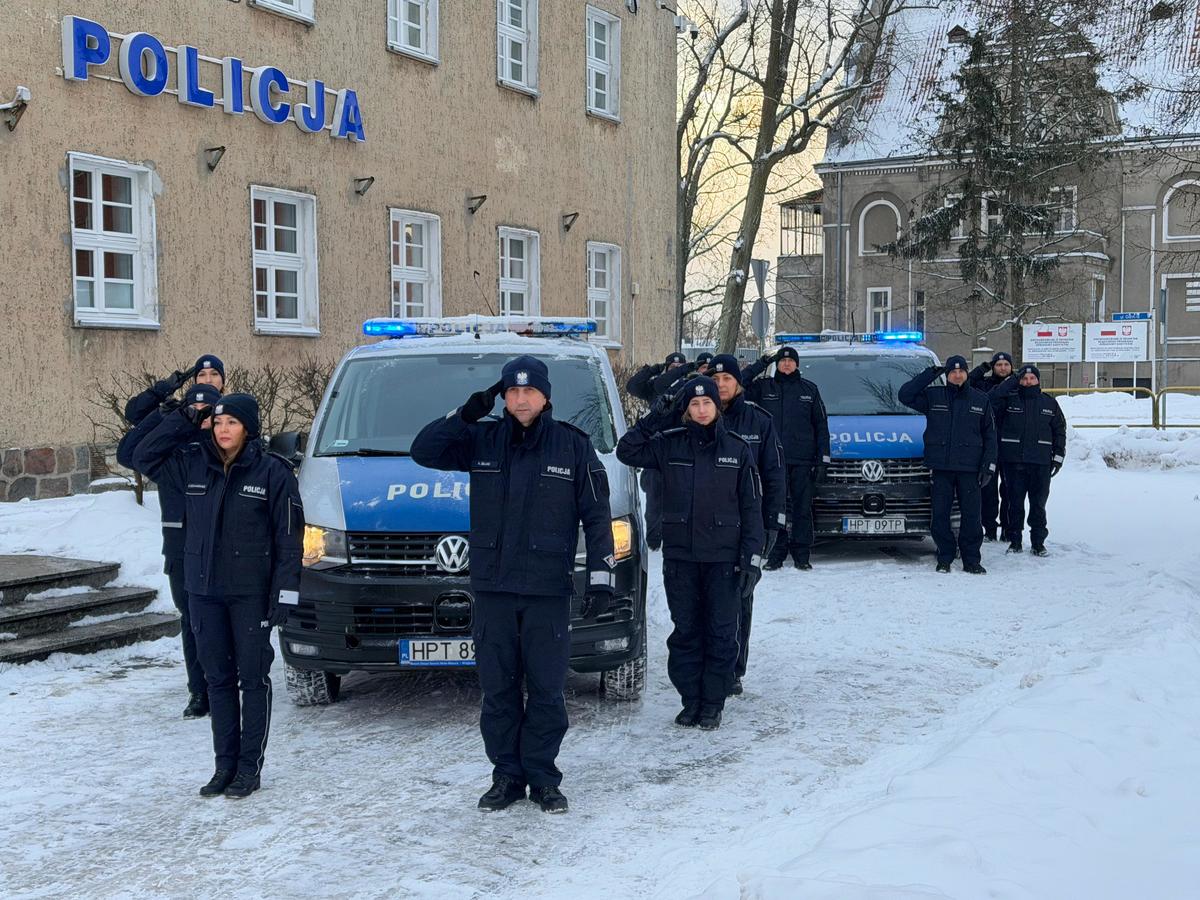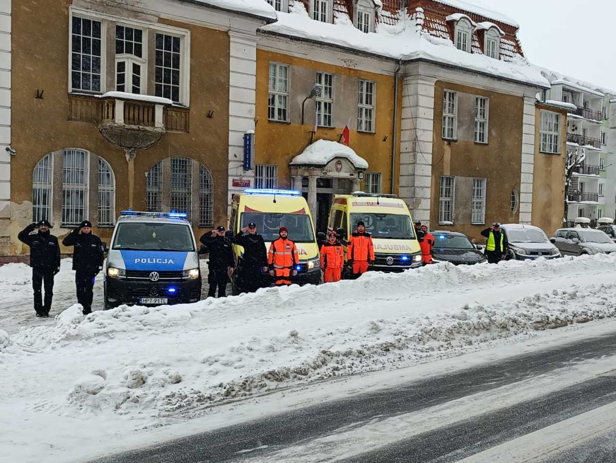 W sobotę (10.01.2026) punktualnie o godz. 9:30 przed zaplanowanymi uroczystościami pogrzebowymi zabrzmiały syreny, a przed budynkami stawili się policjanci i przedstawiciele innych służb, którzy oddali hołd zmarłej policjantce. Przed budynkiem Komendy Wojewódzkiej Policji w Olsztynie zgromadzili się policjanci na czele z insp. Mirosławem Elszkowskim Komendantem Wojewódzkiej Policji w Olsztynie oraz insp. Radosławem Drachem Zastępcą Komendanta Wojewódzkiego Policji w Olsztynie, a także mł. insp. Marcinem Cydzikiem I Zastępcą Komendanta Miejskiego Policji w Olsztynie. Do tej szczególnej inicjatywy przyłączyli się także strażacy z Olsztyna, którym przewodził st. bryg. Sergiusz Dłuski Zastępca Komendanta Miejskiego Państwowej Straży Pożarnej w Olsztynie oraz funkcjonariusze Służby Celno-Skarbowej.