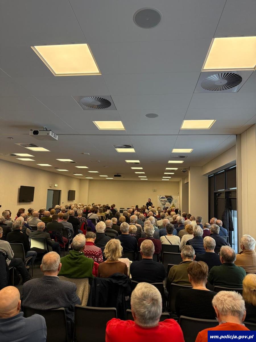 Policjantki z Wydziału Prewencji Komendy Wojewódzkiej Policji w Olsztynie – nadkom. Jolanta Sorkowicz oraz podkom. Izabela Cyganiuk – spotkały się z seniorami zrzeszonymi w Stowarzyszeniu Emerytów przy Michelin Polska. Spotkanie, w którym wzięło udział blisko 230 osób, odbyło się w Hali Widowiskowa-Sportowej Urania w Olsztynie. Policjantki rozmawiały z seniorami o bezpieczeństwie oraz zagrożeniach, które mogą napotkać w życiu codziennym.