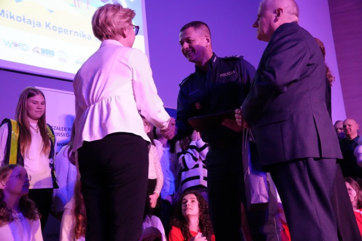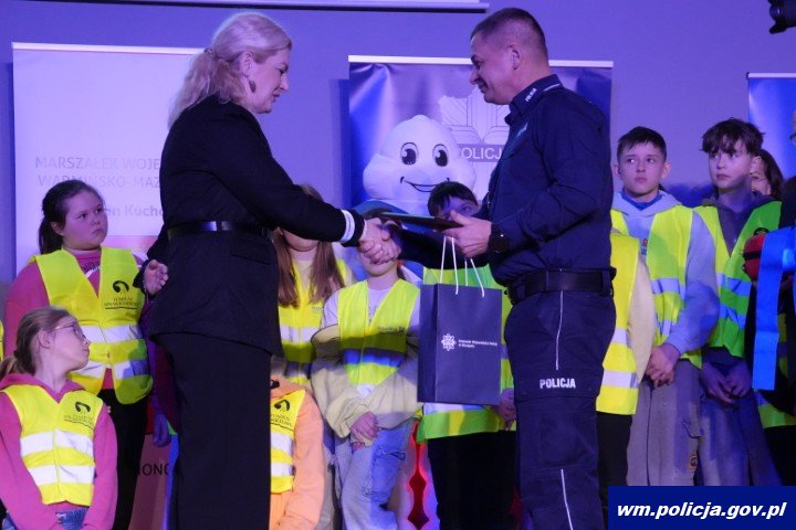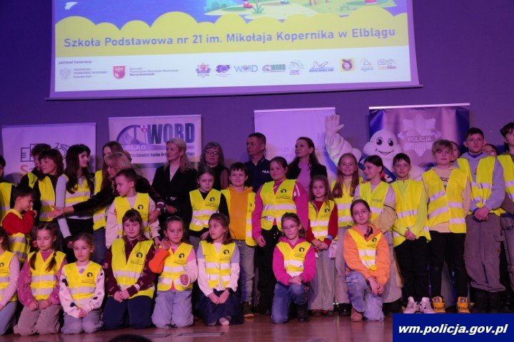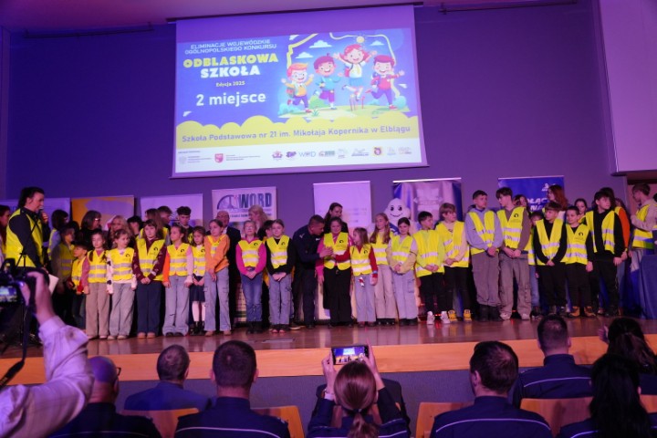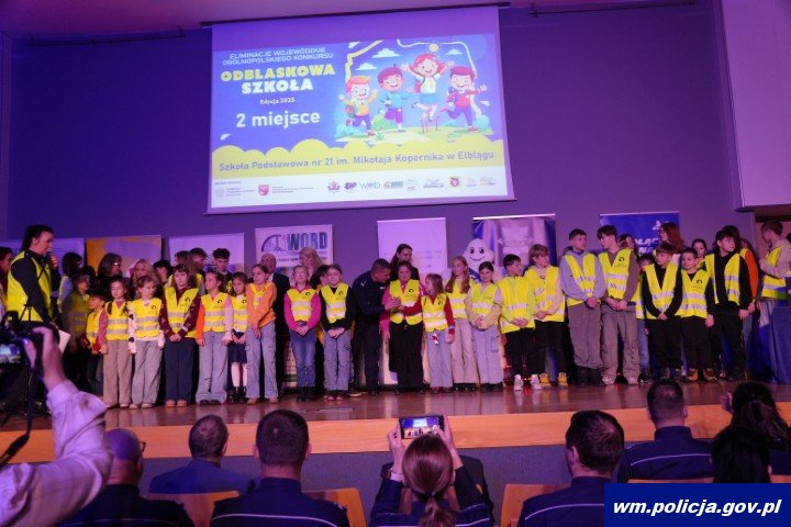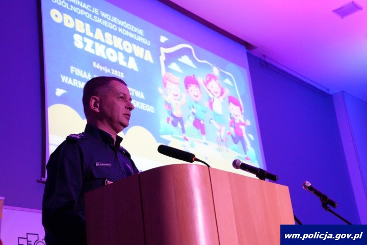 W czwartek (12.02.2026) w budynku Warmińsko-Mazurskiego Urzędu Wojewódzkiego w Olsztynie odbyła się gala finałowa konkursu „Odblaskowa Szkoła 2025”. W tym wyjątkowym wydarzeniu wzięli udział zaproszeni goście: Zbigniew Szczypiński – Wicewojewoda Warmińsko-Mazurski, Adam Szkolnik – Warmińsko-Mazurski Wicekurator Oświaty, Zygmunt Kiersz – Dyrektor Wojewódzkiego Ośrodka Ruchu Drogowego w Elblągu, Tomasz Raczkowski – Zastępca Dyrektora Zarządu Dróg Wojewódzkich w Olsztynie, Grzegorz Wojasiński – Dyrektor ds. Relacji Publicznych Michelin Polska, Piotr Ceroński – Dyrektor Sprzedaży Korporacyjnej PZU Życie, Mirosław Czarnecki – Przewodniczący BRD ZO PZMOT w Olsztynie, Jacek Śniady - Kierownik BRD i Szkoleń Wojewódzkiego Ośrodka Ruchu Drogowego w Olsztynie oraz przedstawiciele współorganizujących instytucji. Policję reprezentował insp. Mirosław Elszkowski Komendant Wojewódzki Policji w Olsztynie, podinsp. Maciej Surowiec Naczelnik Wydziału Ruchu Drogowego KWP w Olsztynie wraz z zastępcą podinsp. Krzysztofem Walaszczykiem, nadkom. Ewa Szczepanek Zastępca Naczelnika Wydziału Prewencji KWP w Olsztynie, podinsp. Zbigniew Przyborowski I Zastępca Komendanta Miejskiego Policji w Elblągu, mł. insp. Jan Julluk I Zastępca KPP w Iławie, podinsp. , asp. szt. Marcin Kurcinkowski – Naczelnik WRD KPP w Kętrzynie. Na sali nie mogło także zabraknąć uczniów i dyrekcji wyróżnionych w konkursie placówek oświatowych.