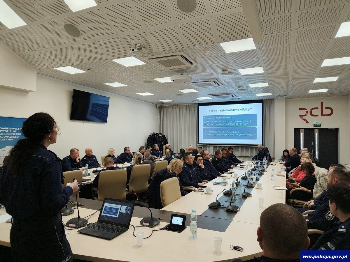 Podczas zajęć szczególny nacisk położono na etykę zawodową w Policji jako fundament codziennej służby i pracy, omawiając i interpretując konkretne zapisy obowiązujących aktów prawnych. Prowadząca zaprezentowała praktyczne przykłady naruszeń zasad etycznych, wskazując ich konsekwencje zarówno na poziomie indywidualnym, jak i organizacyjnym.