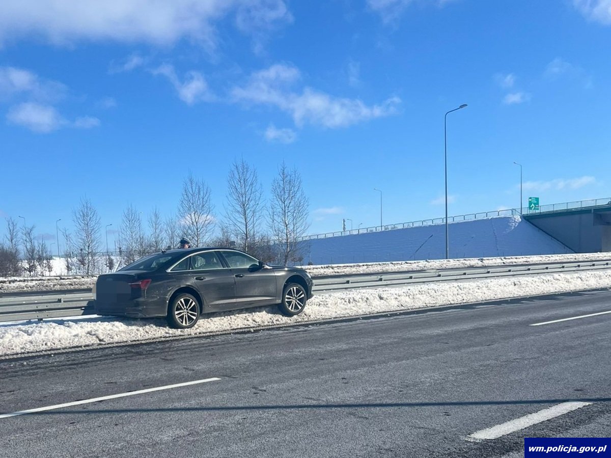 W niedzielę (15.02.2026 r.) około godz. 11:30 oficer dyżurny Komendy Powiatowej Policji w Nidzicy otrzymał zgłoszenie o zdarzeniu drogowym, do którego doszło na drodze ekspresowej S7 w pobliżu węzła Nidzica Północ. Z ustaleń policjantów zadysponowanych do obsługi zdarzenia wynikało, że 79-latek z powiatu pruszkowskiego kierujący samochodem osobowym marki Audi, przemieszczając się w kierunku Warszawy nie dostosował prędkości do warunków panujących na drodze, stracił panowanie nad pojazdem, zjechał na pas zieleni rozdzielający jezdnie, a następnie uderzył w zaspę śnieżną. Zarówno mężczyzna, jak i podróżująca z nim 80-letnia kobieta nie doznali obrażeń, a cała groźnie wyglądająca sytuacja zakończyła się dla sprawcy pouczeniem za spowodowanie kolizji drogowej.