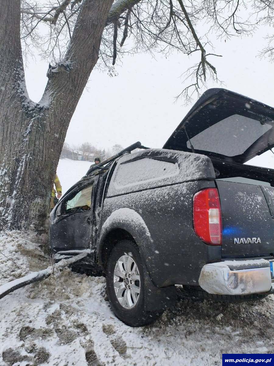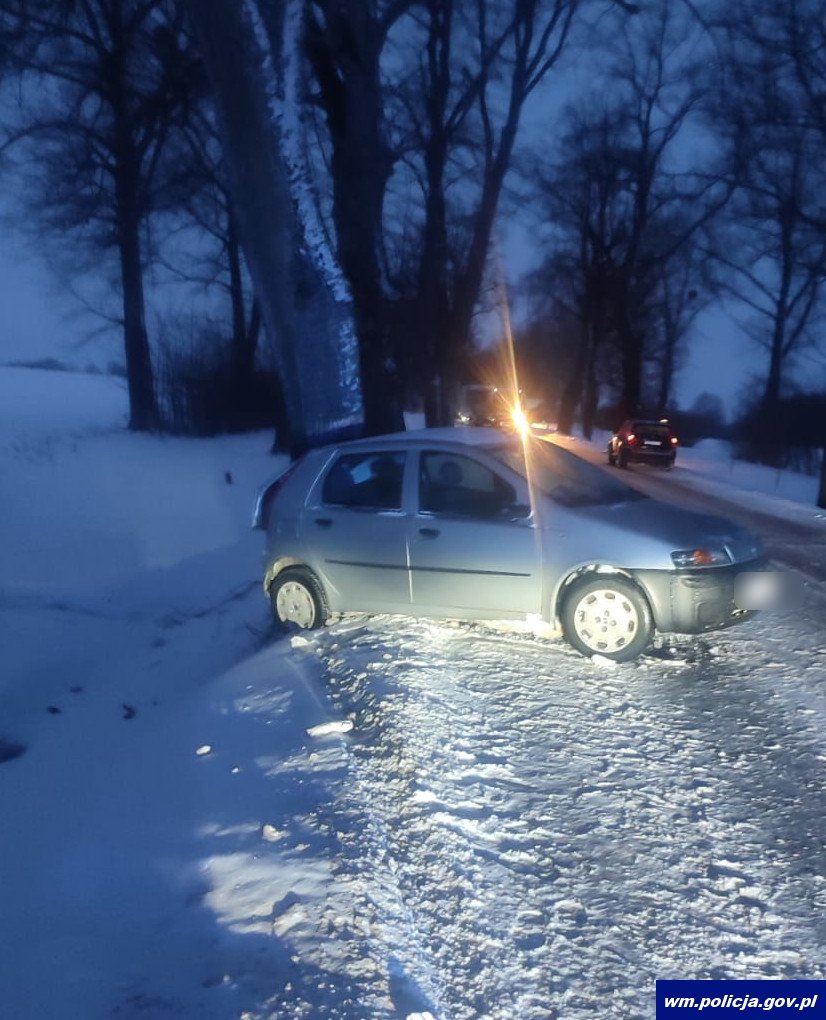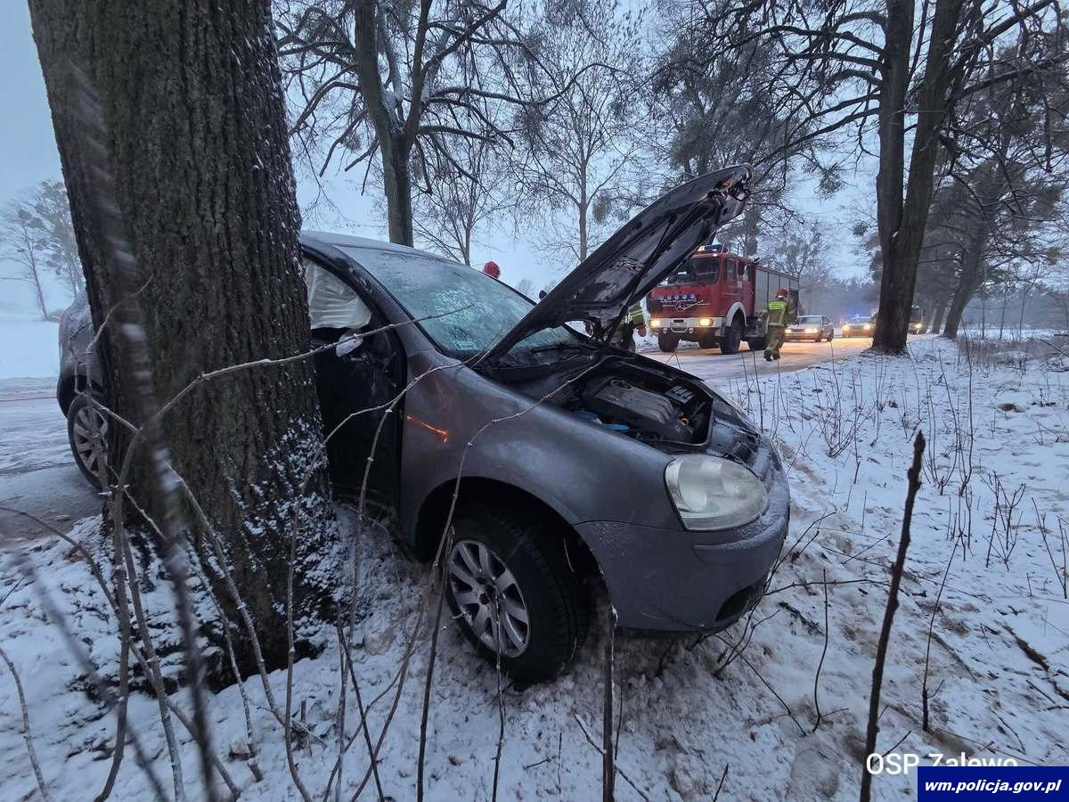 Tymczasem po godzinie 16:00 na jednej z dróg w gminie Zalewo, 48-latka kierująca volkswagenem nie dostosowała prędkości do warunków panujących na drodze, w wyniku czego straciła panowanie nad pojazdem i najechała na drzewo. Kierującej na szczęście również nic poważnego się nie stało.