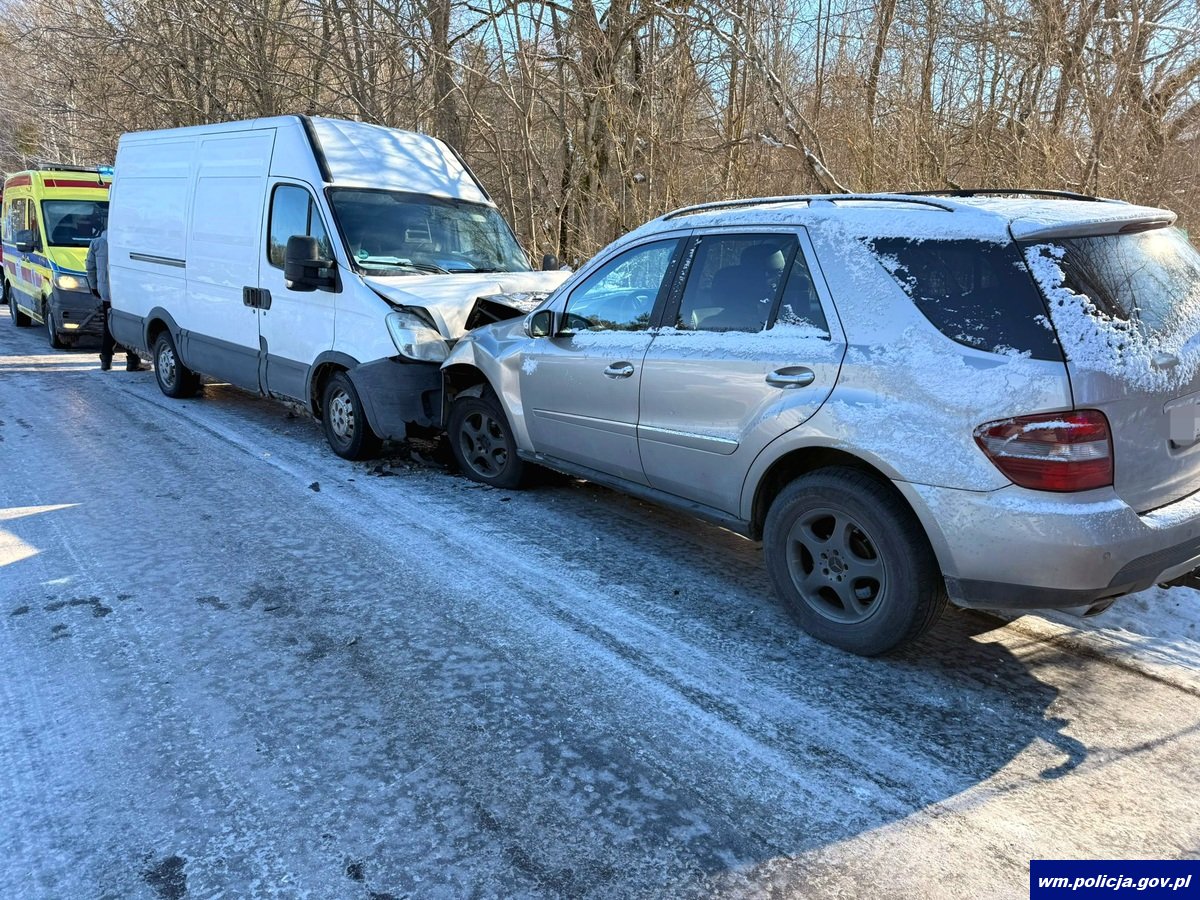 W poniedziałek (16.02.2026 r.) nidziccy policjanci pracowali na miejscu zdarzenia drogowego, do którego doszło około godz. 10:00 w pobliżu Grabówka. Ze wstępnych ustaleń policjantów wynika, że 49-latek kierujący busem marki Iveco jadąc w stronę Janowa, na łuku drogi zjechał na przeciwległy pas jezdni, w wyniku czego uderzył w prawidłowo przemieszczający się pojazd marki Mercedes, którym podróżował 56-letni kierujący wraz z 27-letnią pasażerką. Kierujący byli trzeźwi i nie wymagali pomocy medycznej, natomiast kobieta została przetransportowana do szpitala na dalszą diagnostykę. Funkcjonariusze zatrzymali dowody rejestracyjne obu pojazdów, a technik kryminalistyki wykonał oględziny pojazdów. Teraz, policjanci będą wyjaśniać szczegółowe przyczyny i okoliczności tego zdarzenia.