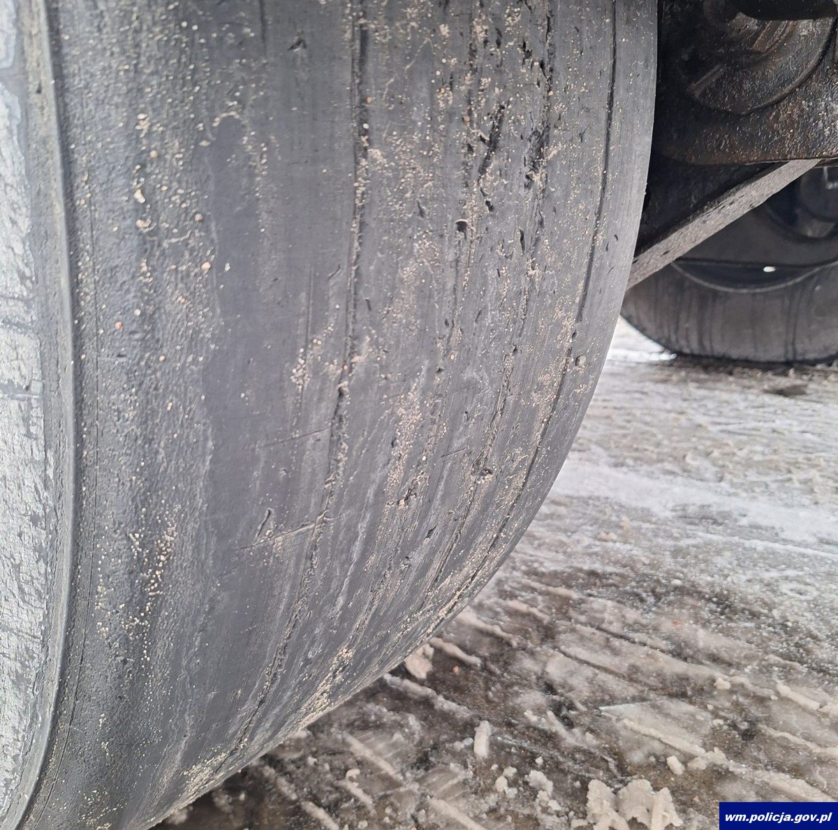 W środę (18.02.2026 r.) rano policjanci z Wydziału Ruchu Drogowego olsztyńskiej komendy miejskiej pracowali przy krajowej siódemce w okolicach Olsztynka. Mundurowi zatrzymali do kontroli drogowej 23-letniego kierującego zestawem ciężarowym. Stan techniczny w jakim znajdował się pojazd dawał wiele do życzenia.