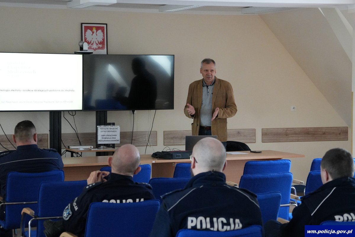 Nietrzeźwi kierowcy to wciąż jedno z największych zagrożeń na drogach. Aby jeszcze lepiej rozpoznawać przypadki prowadzenia pojazdu po alkoholu lub innych środkach działających podobnie, policjanci i pracownicy policji z Warmii i Mazur wzięli udział w specjalistycznym szkoleniu. Jego celem było poszerzenie wiedzy z zakresu podstaw toksykologii i środków działających podobnie do alkoholu podczas ustalania stanu trzeźwości kierowców. Zajęcia poprowadził dr n. med. Paweł Papierz z Instytutu Ekspertyz Medycznych w Łodzi. Biegły sądowy przekazał szeroką wiedzę dotyczącą m.in. prawidłowego zabezpieczania materiału dowodowego oraz właściwego prowadzenia postępowań przygotowawczych.