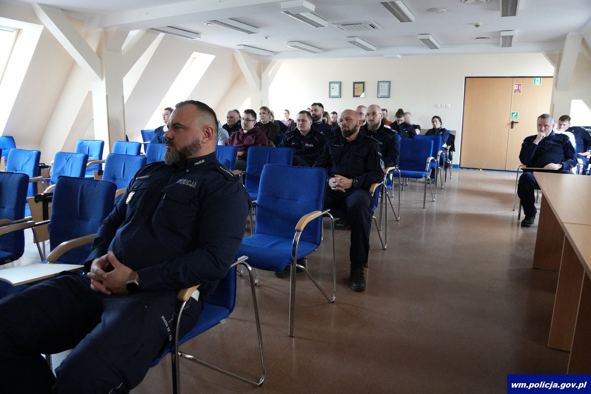 Szkolenie odbyło się w poniedziałek (23.02.2026). Wzięli w nim udział funkcjonariusze i pracownicy z Laboratorium Kryminalistycznego KWP w Olsztynie, Oddziału Prewencji Policji w Olsztynie oraz komórek dochodzeniowo-śledczych, prewencji i ruchu drogowego z garnizonu warmińsko-mazurskiego. Organizatorem wydarzenia był Wydział Ruchu Drogowego KWP w Olsztynie.