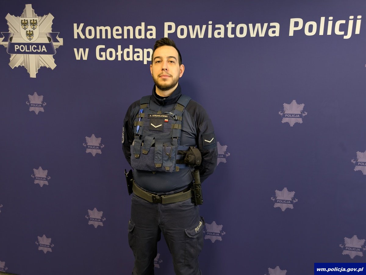 Do zdarzenia doszło w poniedziałek (23.02.2026r.) około godz. 10:00 na jednej z ulic w Gołdapi. Wtedy to, oficer dyżurny otrzymał niepokojące zgłoszenie. W związku z realną obawą zagrożenia życia i zdrowia dyżurny we wskazane miejsce zadysponował patrol prewencji. Sierżant Albert Dzięgielewski, reagując na pilne zgłoszeni, natychmiast udał się pod wskazany adres. Na miejscu zastał mężczyznę w stanie bezpośredniego zagrożenia życia.