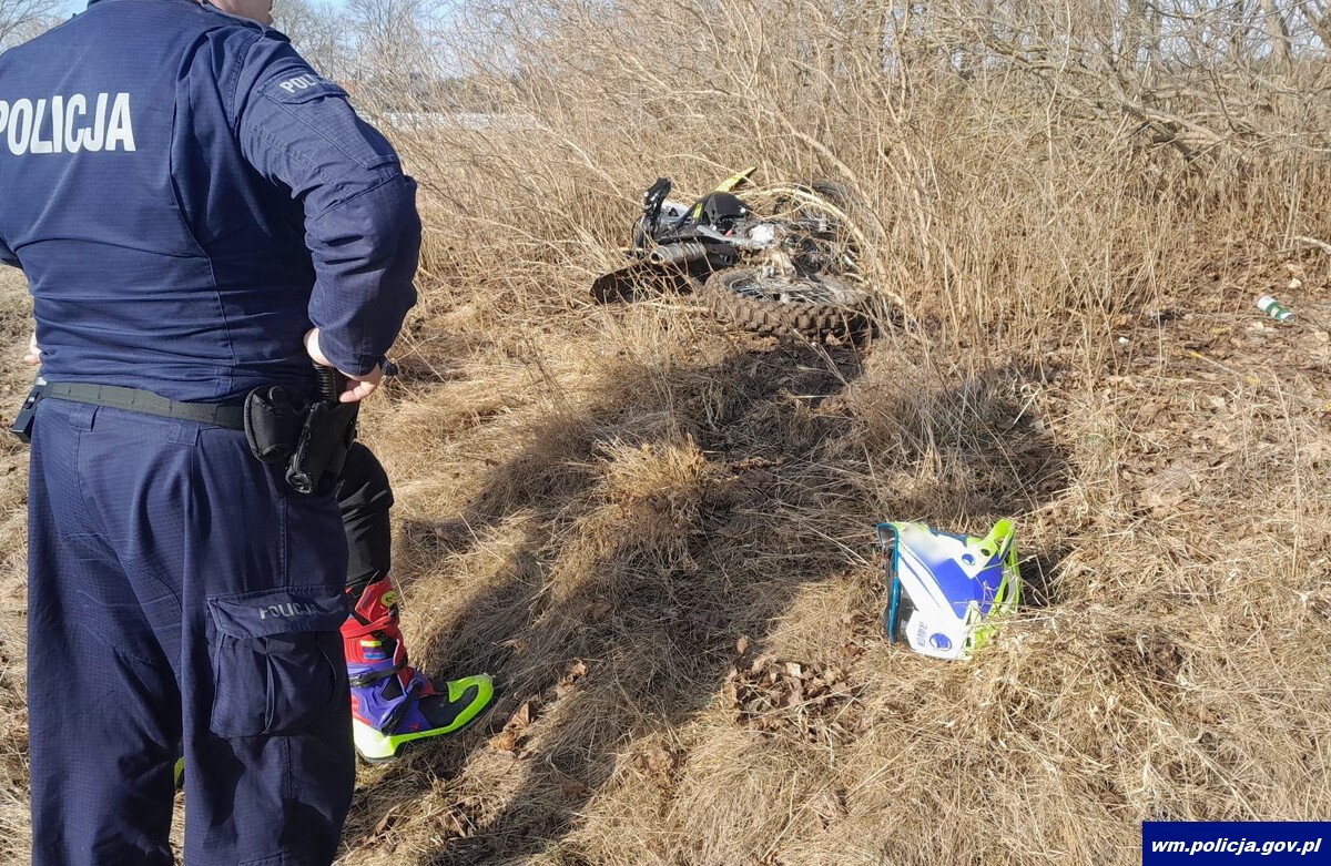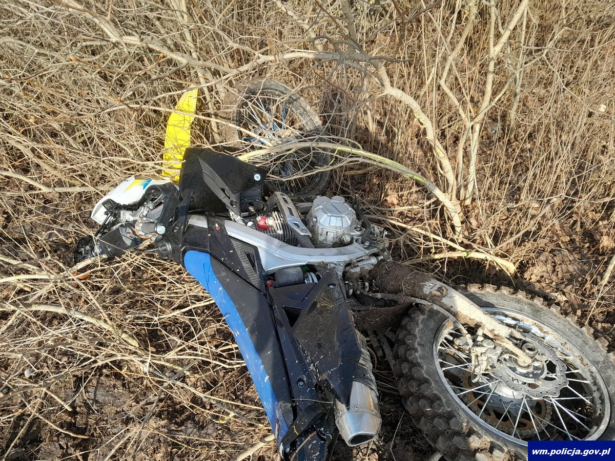 Za wszelką cenę próbował uniknąć kontroli i nie reagował na sygnały świetlne i dźwiękowe z radiowozu i zmusił policjantów do pościgu. Na szczęście podczas tej ucieczki nikomu nic się nie stało. Podczas pościgu 21-latek popełnił kilka wykroczeń drogowych. W pewnym momencie zjechał z jezdni i wjechał na pole, kontynuując ucieczkę w trudnym terenie. W końcu nie mógł poruszać się po błotnistym terenie i próbował siebie oraz motocykl ukryć w zagajniku. Liczył, że schowany w krzakach pozostanie niezauważony.