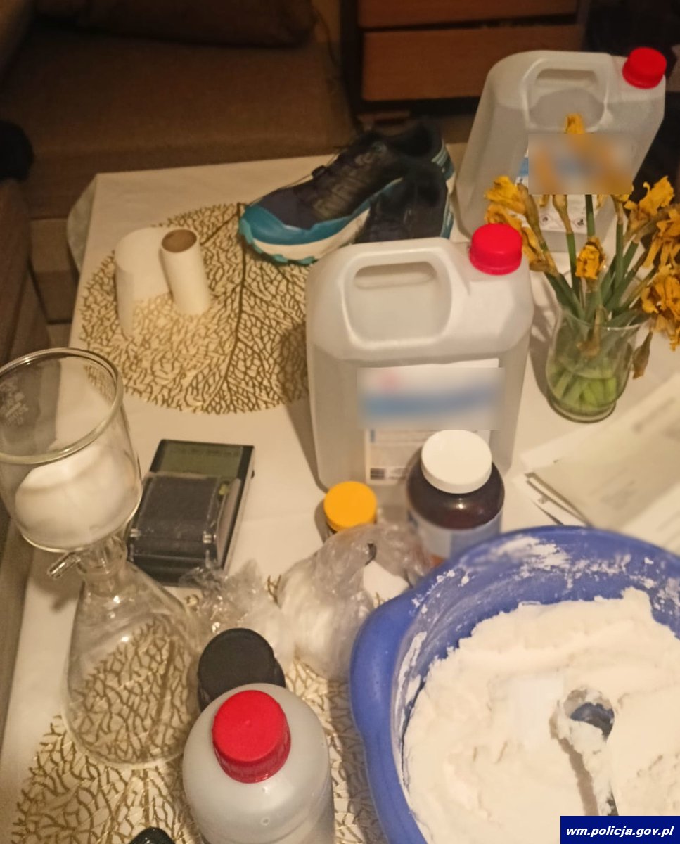 Kryminalni z Olsztyna zatrzymali trójkę osób podejrzanych o włamanie do siedziby firmy i kradzież sejfu z gotówką i dokumentami. Przestępstwo miało miejsce w połowie grudnia zeszłego roku w Olsztynie, a zatrzymania sprawców zrealizowane po kilku tygodniach od zdarzenia na terenie trzech województw. W jednym z mieszkań, do którego zapukali policjanci, znajdowała się linia produkcyjna, na której wytwarzane były podrobione lekarstwa i środki dopingujące oraz ponad 2 kg substancji zawierającej między innymi mefedron.