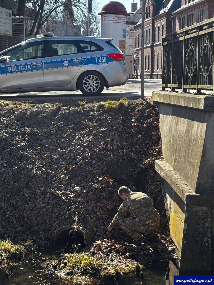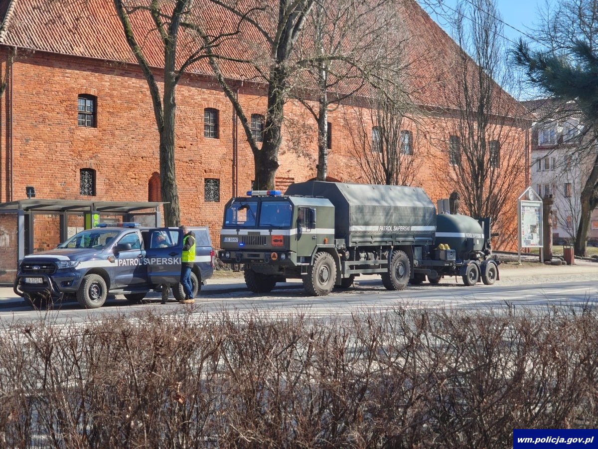 W niedzielę (22.03.2026) około godziny 9:00 oficer dyżurny ostródzkiej jednostki policji został powiadomiony przez osobę postronną o tym, że w rzece w rejonie Urzędu Miejskiego w Ostródzie odnaleziono niewybuch.