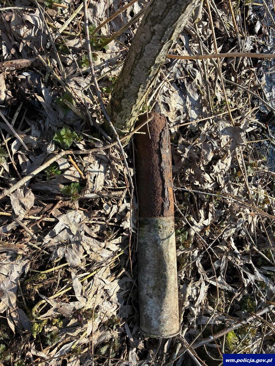 W niedzielę (22.03.2026 r.) po godzinie 18:00, dyżurny otrzymał zgłoszenie dotyczące znalezienia niebezpiecznego przedmiotu na polu uprawnym podczas prowadzonych tam prac agrotechnicznych. Osoba spacerująca w tym rejonie zauważyła pocisk artyleryjski i powiadomiła o tym służby. Na miejsce natychmiast skierowano patrol policji, który zabezpieczył teren do czasu przyjazdu patrolu saperskiego. Jak ustalono, był to pocisk artyleryjski kalibru 75 mm bez zapalnika, produkcji niemieckiej, pochodzący z okresu II wojny światowej. Wezwany patrol saperski podjął niewybuch. Pocisk zostanie przetransportowany na poligon, gdzie zostanie bezpiecznie zneutralizowany.
