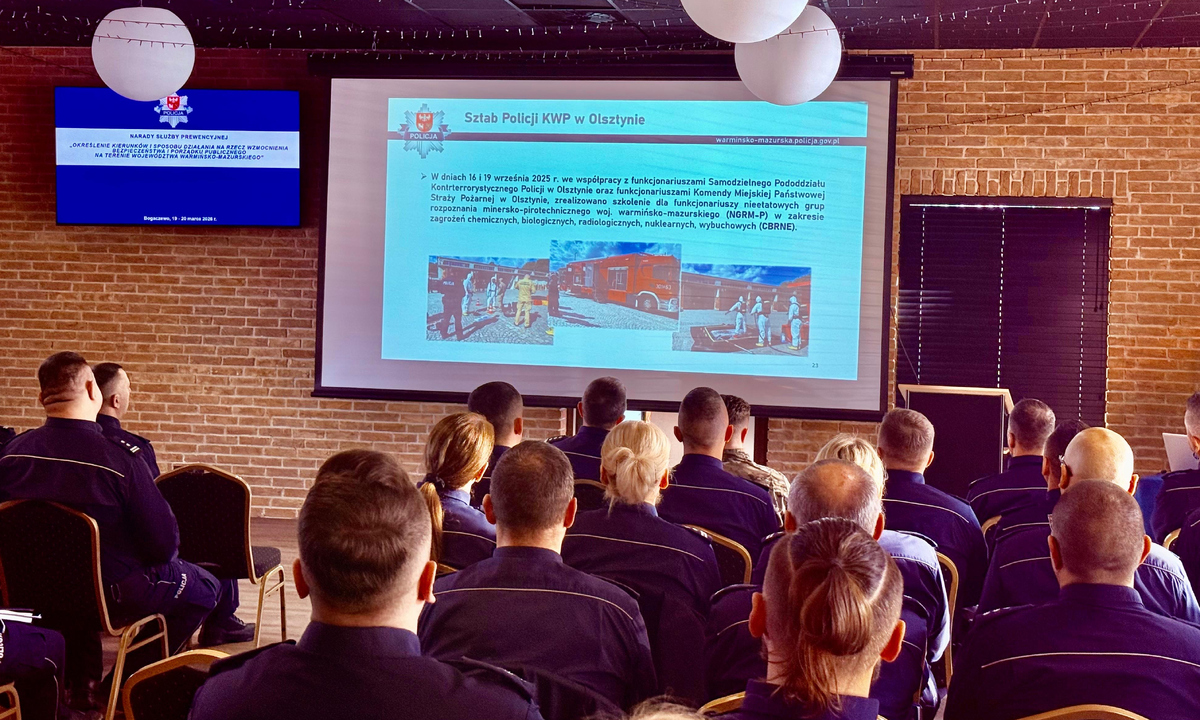 W dniach 19–20 marca 2026 r. w Bogaczewie odbyła się narada służby prewencyjnej, której celem było określenie kierunków działań zmierzających do wzmocnienia bezpieczeństwa i porządku publicznego na terenie województwa warmińsko-mazurskiego. Spotkanie stanowiło ważne forum wymiany doświadczeń oraz omówienia aktualnych wyzwań stojących przed Policją garnizonu warmińsko – mazurskiego w obszarze prewencji.