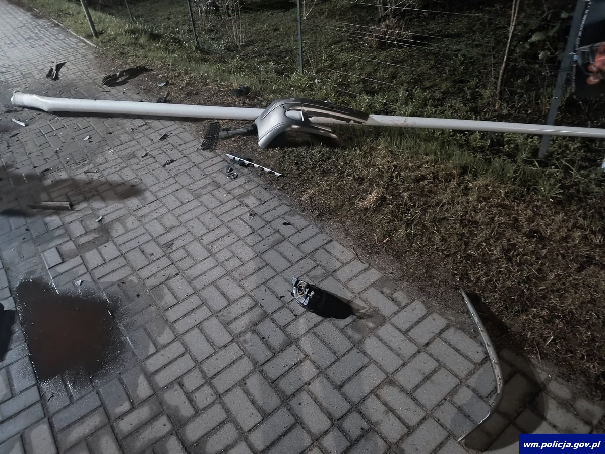 Dodatkowo, w dniu 6 kwietnia br. około godz. 5:00 policjanci patrolujący Aleję Zwycięstwa w Olecku zauważyli uszkodzoną latarnię oświetlenia miejskiego, przewróconą na chodnik.