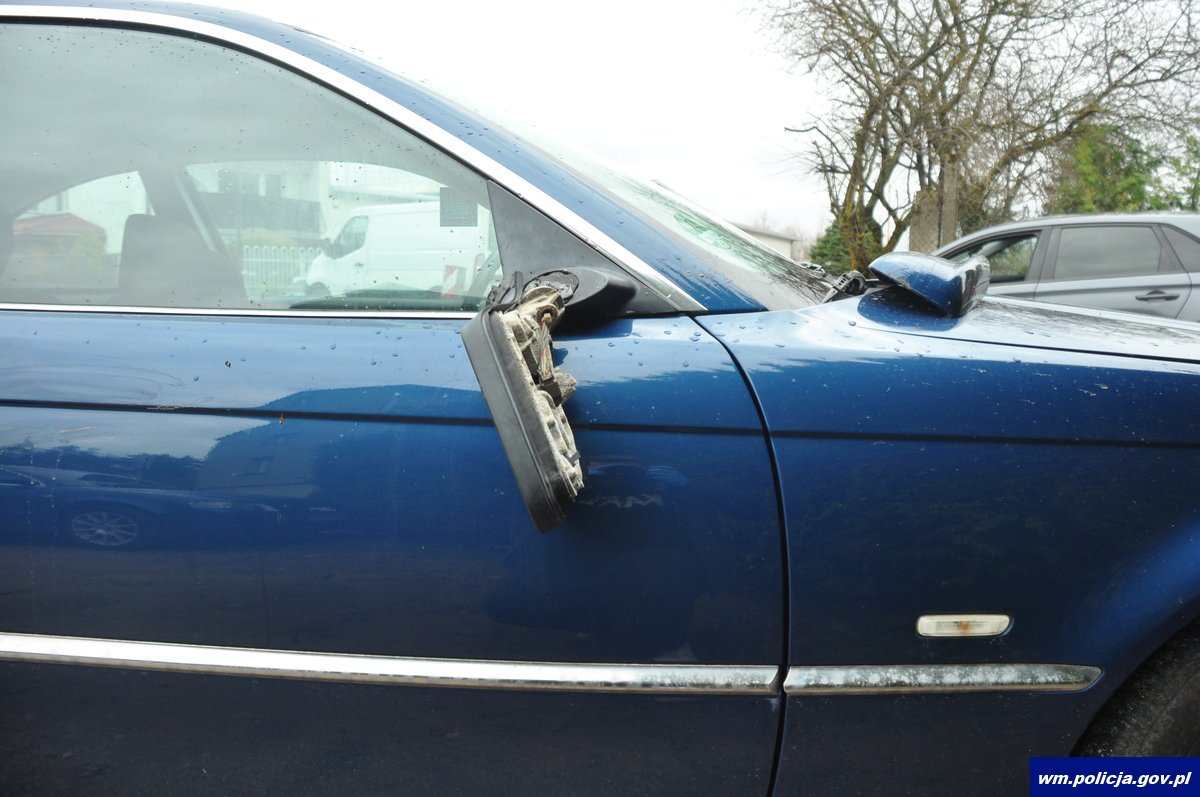 Policjanci dostali zgłoszenie o zniszczeniu samochodu osobowego BMW (09.04.2026 r.), zaparkowanego przy bloku w Ełku. Sprawca urwał dwa lusterka boczne, przebił jedno koło oraz spowodował wgniecenia i zarysowania na pojeździe. Pokrzywdzony wycenił straty na kwotę nie mniejszą niż 5300 złotych.