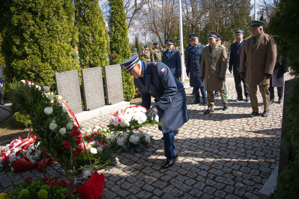 W poniedziałek (13.04.2026 r.) miało miejsce wydarzenie upamiętniające poległych podczas zbrodni katyńskiej. W uroczystości udział wziął Komendant Wojewódzki Policji w Olsztynie insp. Mirosław Elszkowski, Prezydent Olsztyna Robert Szewczyk oraz Wojewoda Warmińsko-Mazurski Radosław Król.