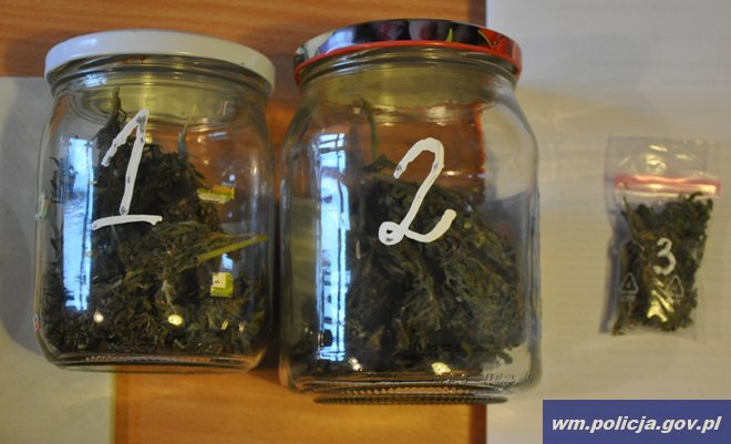 Była niedziela w nocy, a patrol prewencji pełnił służbę na ulicach miasta, gdy na jednej ze stacji paliw zauważył stojące auto osobowe, a w nim próbującego ukryć się na widok radiowozu kierowcę. Mężczyzna nałożył kaptur i zsunął się na siedzeniu. Policjanci podeszli do auta i wylegitymowali go. Następnie podczas kontroli auta, ujawnili w jego drzwiach woreczek foliowy z zielonym suszem. Gdy zajrzeli nieco głębiej, za siedzeniem kierowcy znaleźli dwa słoje z zawartością suszu. Zdenerwowanego 26-latka policjanci przewieźli na komendę w Działdowie celem wyjaśnienia. Zabezpieczony materiał przebadali narkotesterem. Okazało się, że to marihuana. Ponadto w czasie przeszukania w miejscu zamieszkania Kamila K. funkcjonariusze wydziału kryminalnego zabezpieczyli kolejny pojemnik z suszem. W sumie młodzieniec posiadał blisko 50 gramów marihuany.