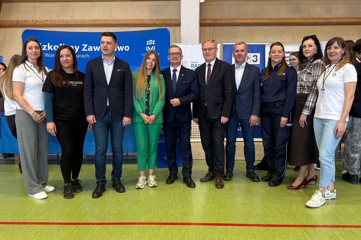 W środę (22.04.2026 r.) w godzinach 10.00–12.00 w Zespole Szkół Kształtowania Środowiska i Agrobiznesu w Giżycku odbyły się Targi Pracy i Edukacji, zorganizowane m.in. przez Młodzieżowe Centrum Kariery Ochotniczych Hufców Pracy w Giżycku oraz Wyższą Szkołę Bezpieczeństwa w Poznaniu. W wydarzeniu aktywny udział wzięli policjanci z Komendy Powiatowej Policji w Giżycku, którzy przygotowali stoisko informacyjno-promocyjne. Funkcjonariusze przybliżali specyfikę służby w Policji, omawiali etapy rekrutacji oraz odpowiadali na pytania osób zainteresowanych wstąpieniem w szeregi formacji.