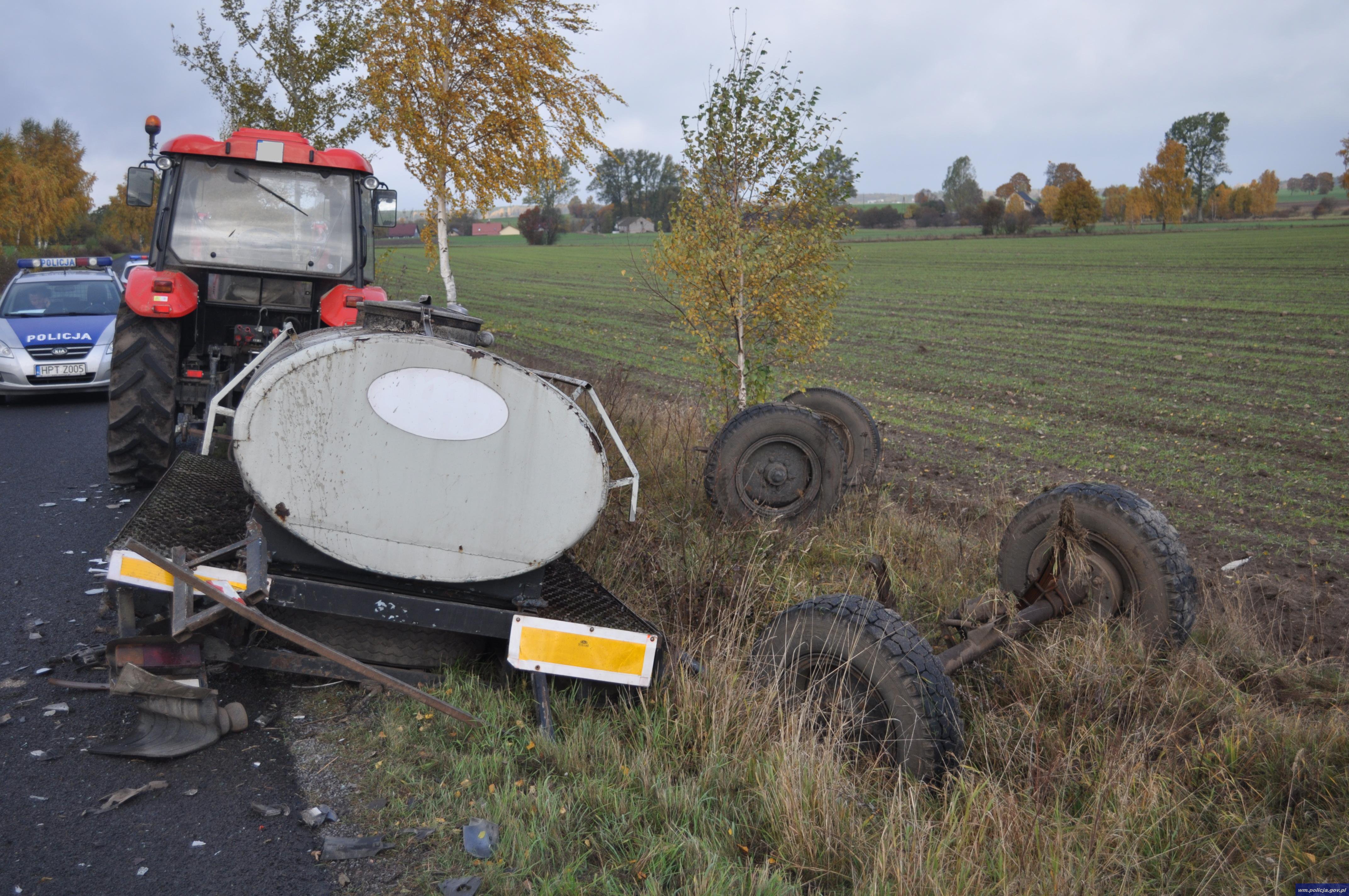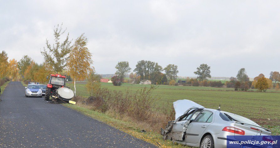 Kierujący zestawem rolniczym mieszkaniec gminy Kozłowo był trzeźwy i nie odniósł żadnych obrażeń.