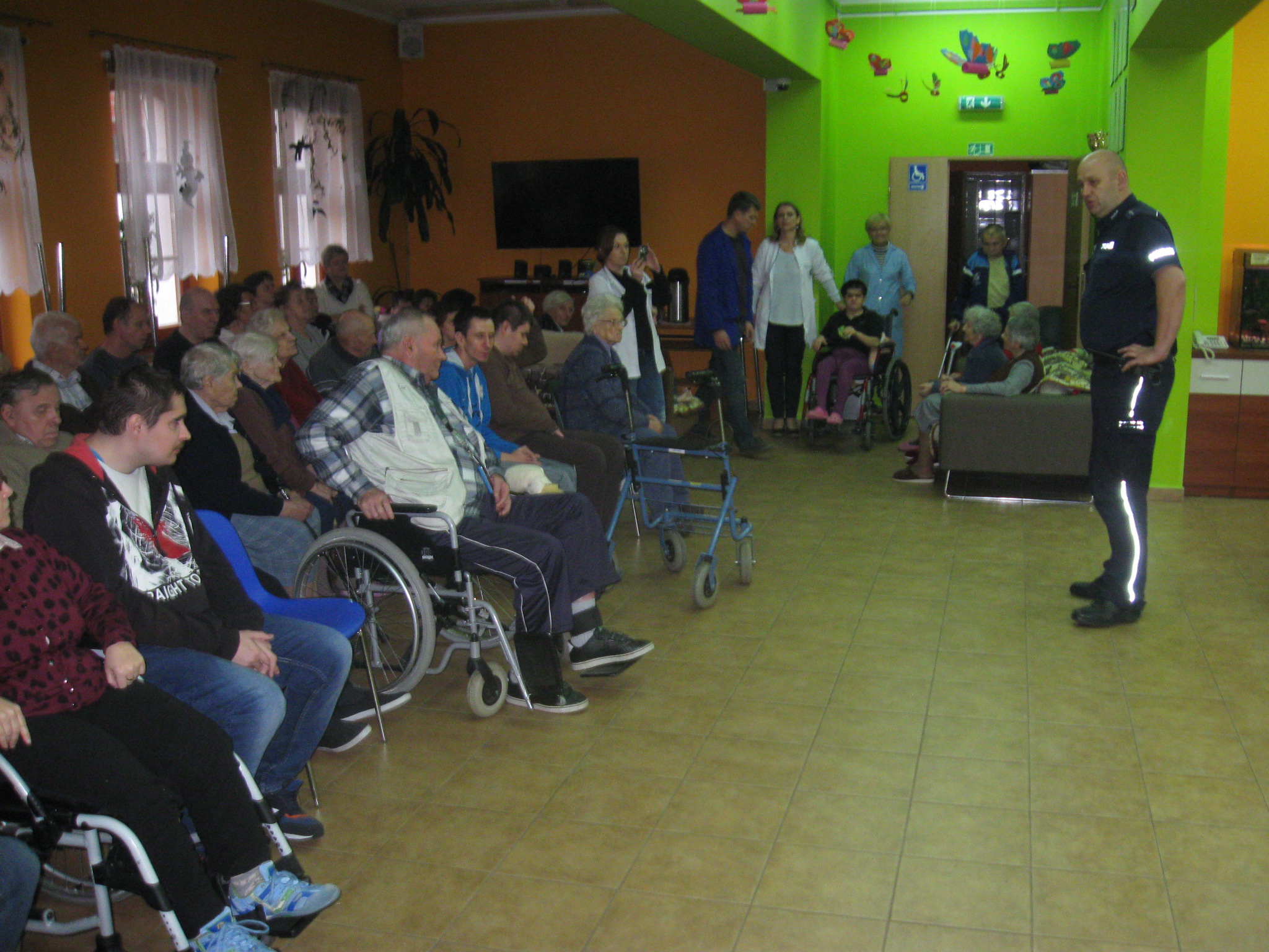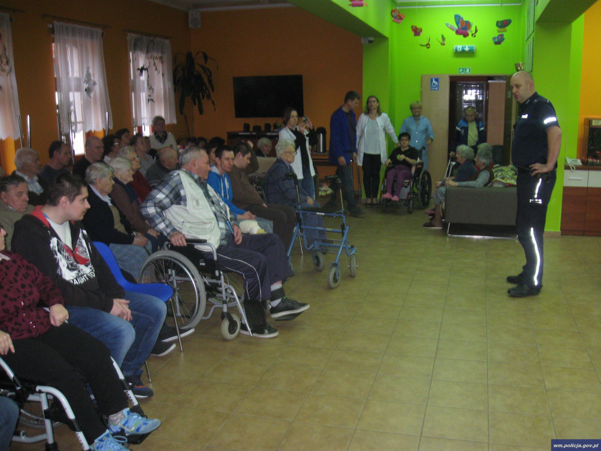 Kętrzyńscy policjanci spotkali się z podopiecznymi Środowiskowego Domu Pomocy Społecznej w Kętrzynie. Seniorzy łatwo mogą stać się ofiarami oszustów i naciągaczy. Osoby starsze, które czują się samotne, schorowane, a także poprzez swoją ufność, często niepełnosprawność narażone są w większym stopniu na działania ze strony przestępców. Uczestnicy mieli okazję zapoznać się z metodami oszustw i kradzieży oraz podzielić się z policjantami swoimi doświadczeniami. Szczególny nacisk położono na działania sprawców podszywających się pod urzędników, inkasentów, akwizytorów oraz używających metody „na wnuczka” i „policjanta”. Poruszono także temat zabezpieczenia mienia przed kradzieżą oraz podawania danych personalnych przez telefon. Osoby starsze z ogromnym zainteresowaniem słuchały o tym, jak ustrzec się przed oszustem i nie dać się zwieść jego manipulacjom. Funkcjonariusze zakończyli spotkanie z nadzieją, że przekazane seniorom informacje spowodują, że żaden z nich nie pozwoli się oszukać fałszywemu urzędnikowi lub wnuczkowi.