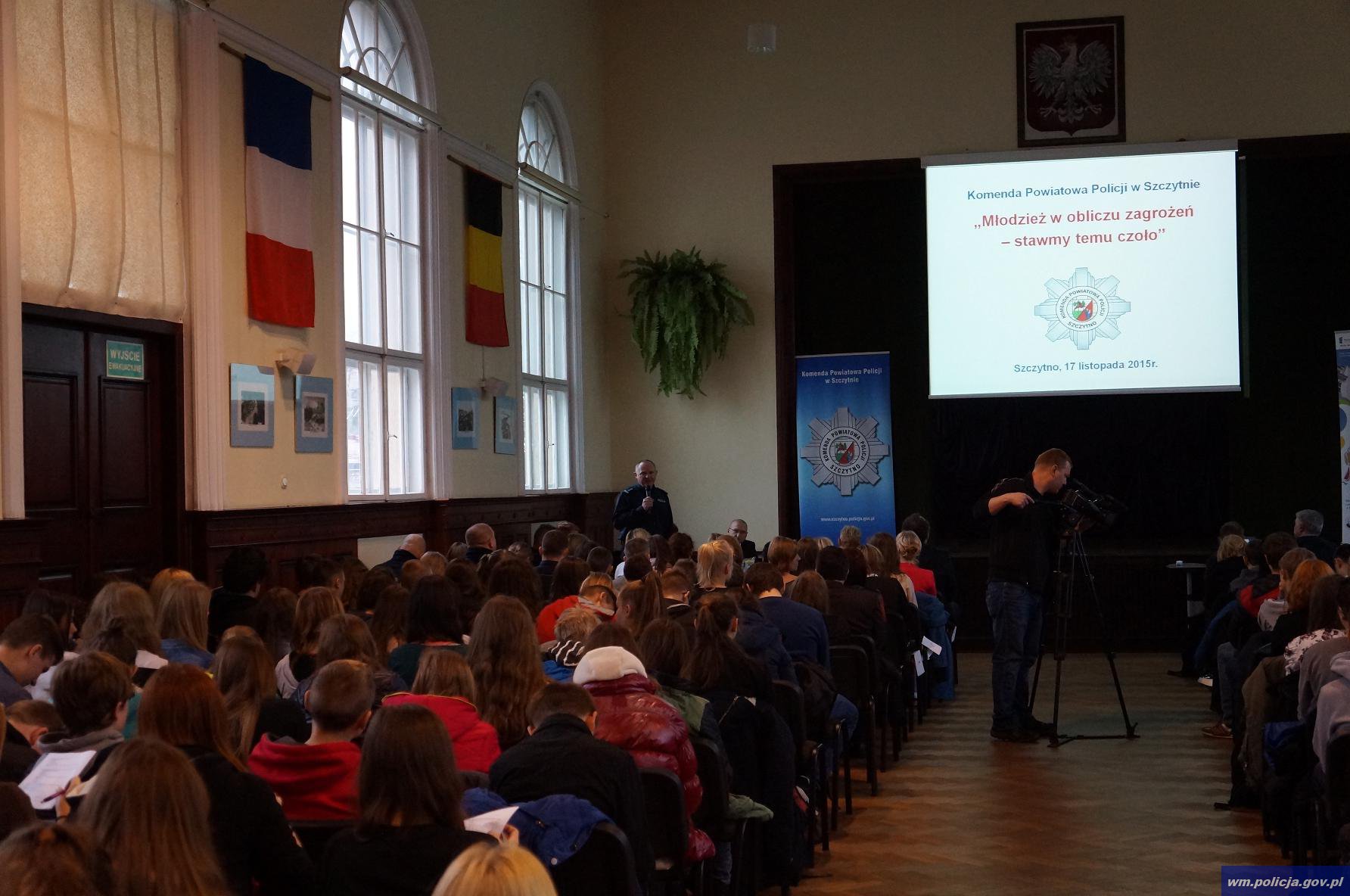 Komenda Powiatowa Policji w Szczytnie razem ze Starostwem Powiatowym, Urzędem Miasta oraz Wyższą Szkołą Policji zorganizowała debatę poświęconą bezpieczeństwu dzieci i młodzieży. Uważamy, że na każdym z nas spoczywa obowiązek działania wobec zagrożeń na jakie w codziennym życiu narażeni są młodzi ludzi. Debata cieszyła się bardzo dużym zainteresowaniem ze strony uczniów gimnazjów i szkół średnich.