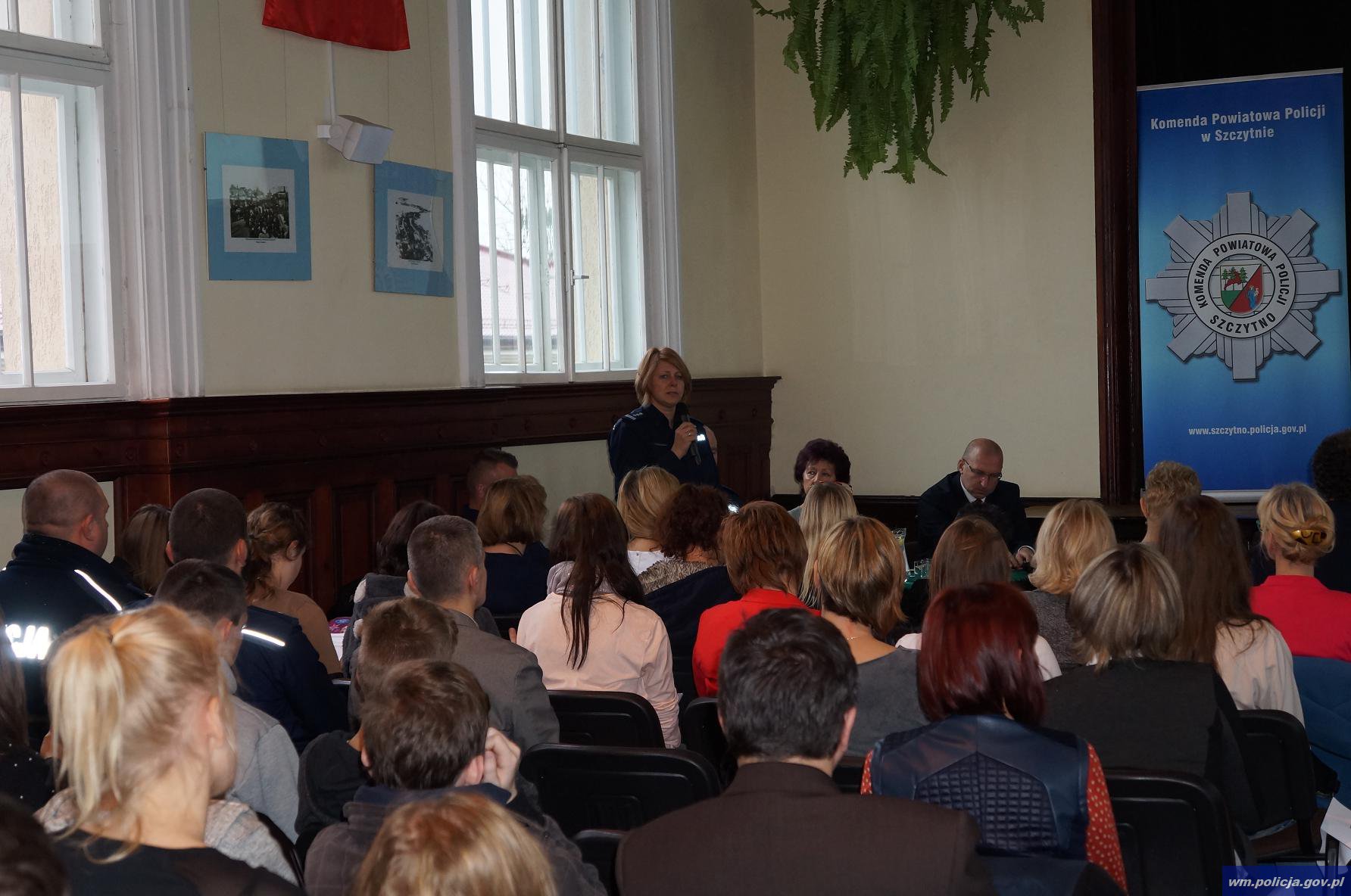 Jowita Sikorska Sędzia Sądu Rodzinnego w Szczytnie przybliżyła uczniom, pedagogom i rodzicom problem odpowiedzialności prawnej nieletnich oraz o stosowanych wobec nich środkach wychowawczych.