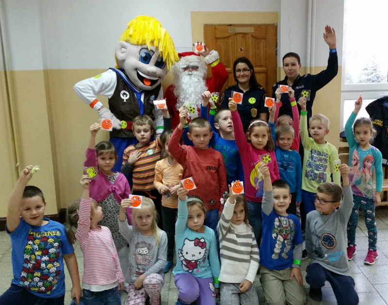 Policjanci wspólnie z Komendant Straży Miejskiej oraz Mikołajem i Optysiem odwiedzili uczniów szkół podstawowych na terenie miasta. Podczas spotkania funkcjonariusze omówili podstawowe zasady bezpieczeństwa obowiązujące na drodze, w tym prawidłowego przechodzenia przez jezdnię, korzystania z chodnika czy pobocza. Ponadto, przypomnieli dzieciom jak ważną rolę pełnią elementy odblaskowe noszone na wierzchniej części odzieży czy na plecaku. Na zakończenie spotkania dzieci otrzymały odblaski.