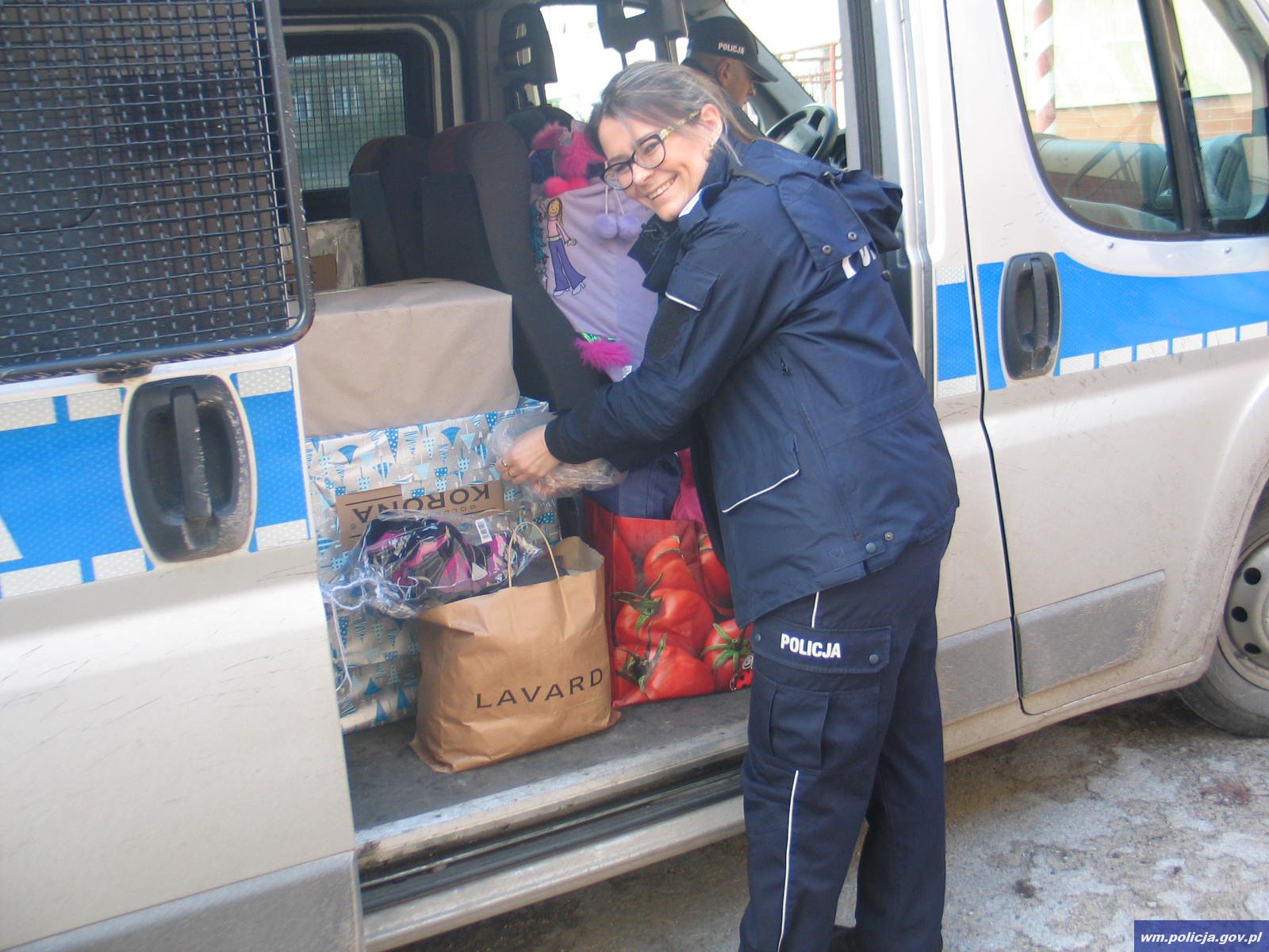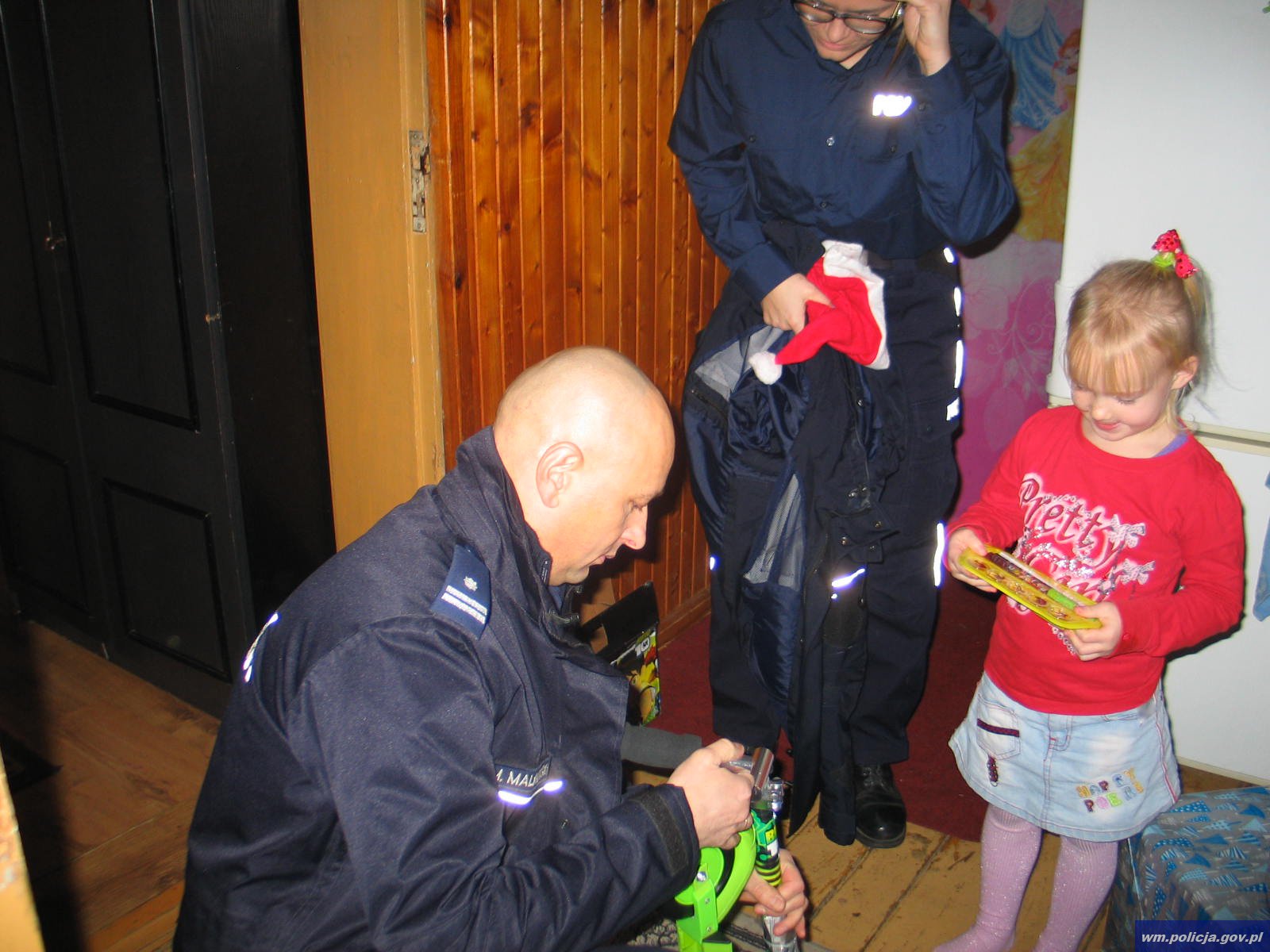 Pudła z zapakowanymi upominkami pojechały do wytypowanej rodziny w jednej z miejcowości pod Morągiem. W dostarczenie prezentów pod wskazany adres zaangażował się m.in. podinsp. Marcin Malinowski, Komendant Komisariatu Policji w Morągu, który osobiście brał udział w wręczaniu prezentów.