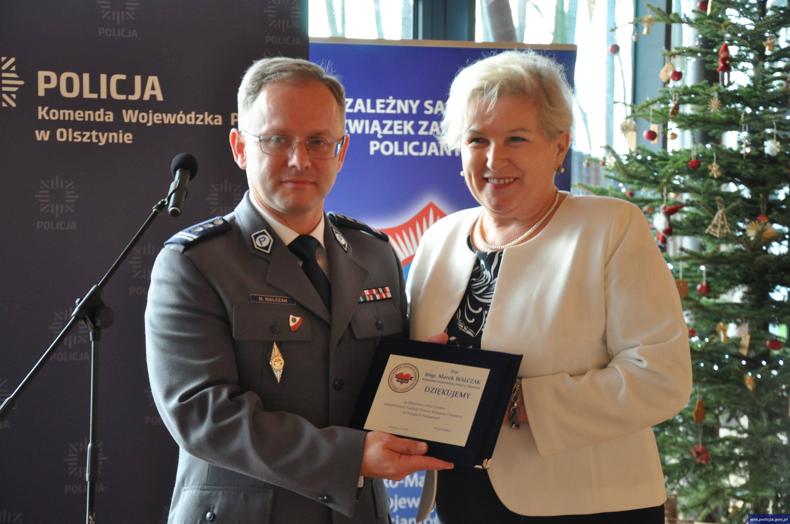 Pani Irena Zając wręczyła insp. Markowi Walczakowi podziękowania od Fundacji.