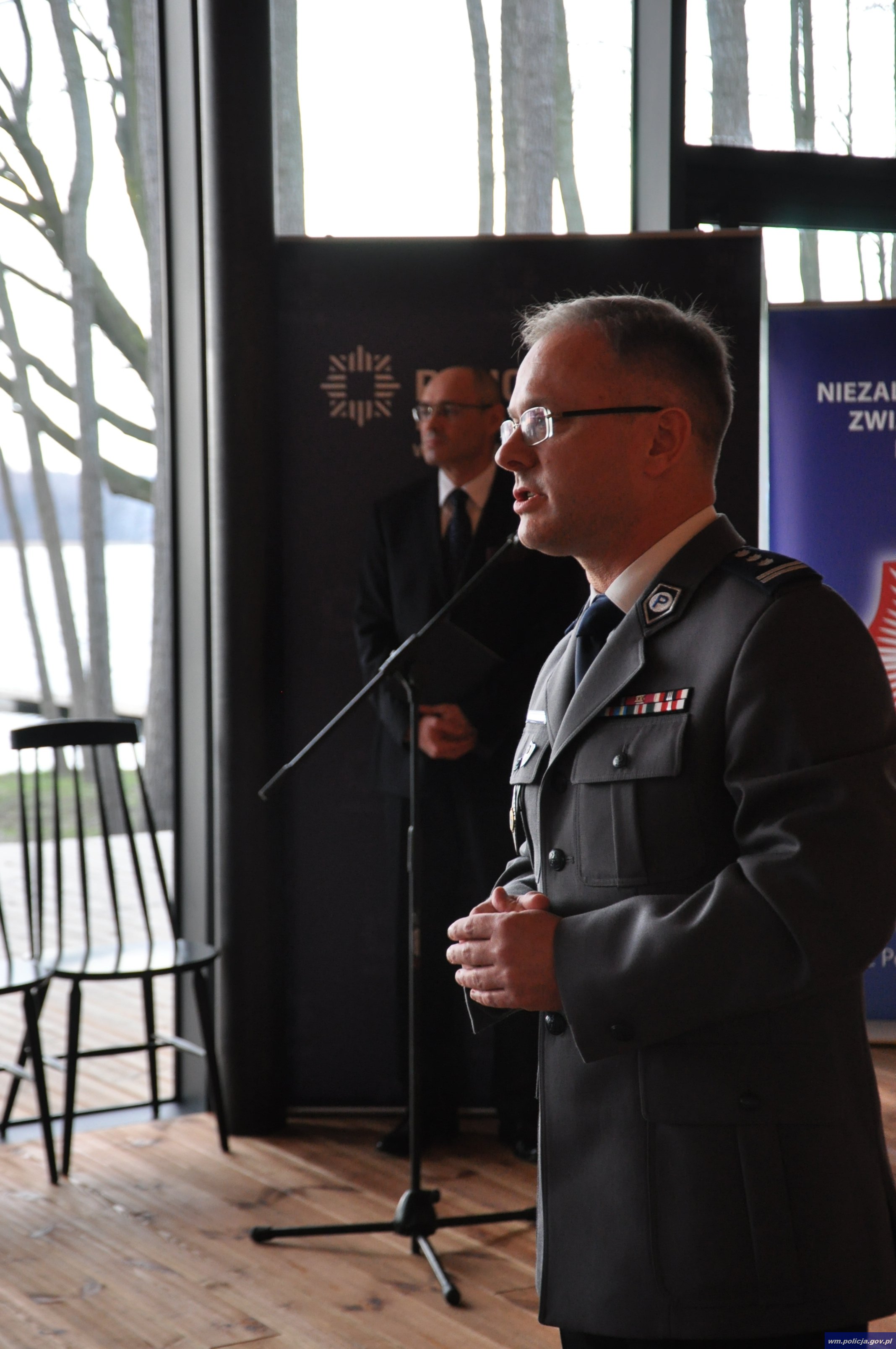 Insp. Marek Walczak przypomniał ideę tych spotkań, wspominania tych, którzy odeszli, lecz nadal pozostają w naszej pamięci i sercach. W ciepłych słowach skierowanych do rodzin poległych policjantów komendant podkreślił, że jesteśmy jedną policyjną rodziną. Strata kogoś bliskiego to ogromny cios, jednak my pamiętamy, że ci policjanci pełniąc służbę do końca byli wierni rocie ślubowania, sumiennie wykonywali swoje obowiązki, byli po prostu dobrymi ludźmi. Komendant Wojewódzki Policji w Olsztynie podziękował także tym, którzy pomagają i otaczają opieką rodziny poległych policjantów. Co najważniejsze, jak podkreślił, robią to z potrzeby serca, niesienia dobra.