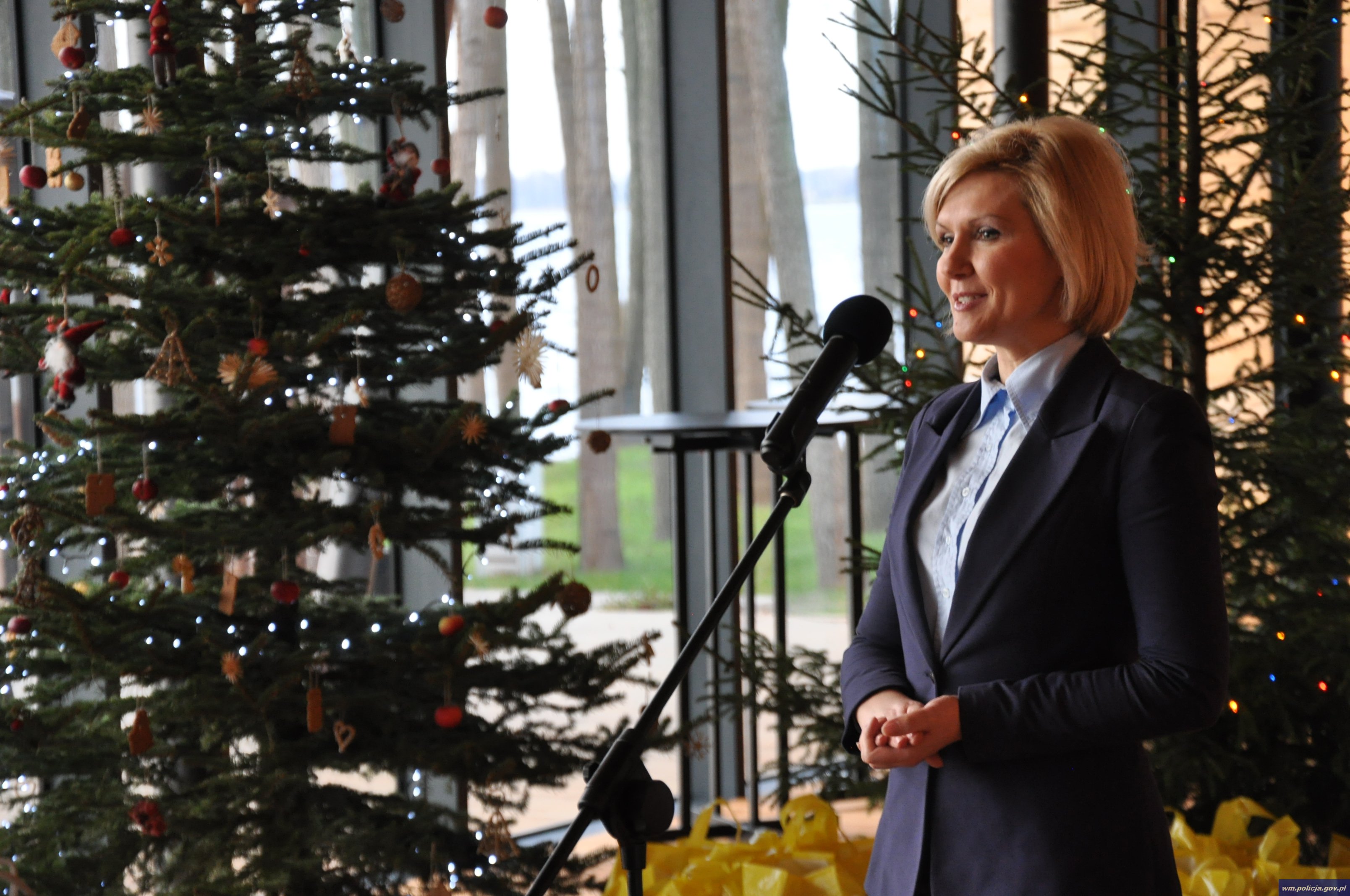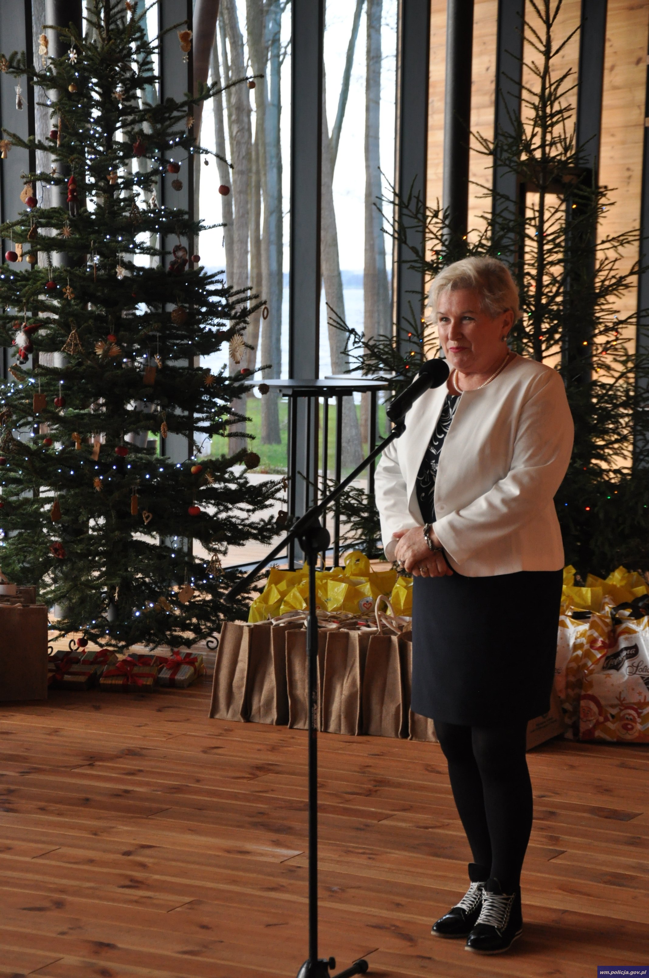 Natomiast Pani Irena Zając szefowa Fundacji wyraziła swoją ogromną radość z obecności na spotkaniu. Przypomniała także, że to właśnie pełnomocnik KWP w Olsztynie ds. współpracy z Fundacją Pani Małgorzata Kowalewicz kilka lat temu pierwsza w kraju zorganizowała takie spotkanie i było to przykładem dla innych województw. Pani Prezes podziękowała także obecnym darczyńcom wskazując działania – zimowy i wakacyjny wypoczynek, pomoc finansowa - które dzięki nim udało się już zrealizować.