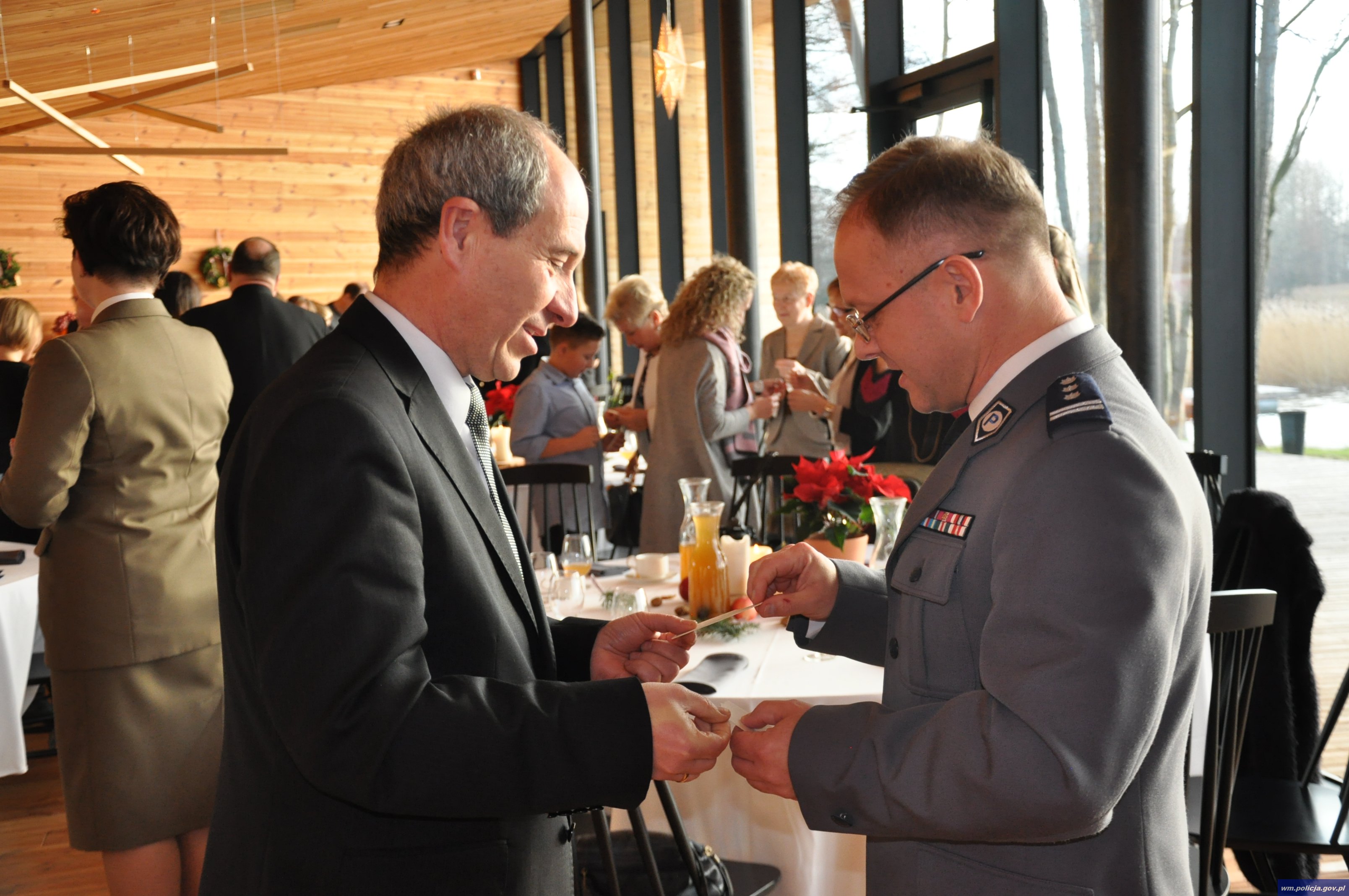 Dziś z inicjatywy insp. Marka Walczaka Komendanta Wojewódzkiego Policji w Olsztynie odbyło się spotkanie wigilijne z podopiecznymi Fundacji Pomocy Wdowom i Sierotom Po Poległych Policjantach. Jesteśmy jedną policyjną rodziną. Naszym obowiązkiem jest pamiętać o tych, którzy wypełnili rotę ślubowania do końca. A ci - "ludzie o wrażliwości aniołów", którzy angażują się w opiekę nad rodzinami tych, którzy odeszli na wieczną służbę, robią to z potrzeby serca, a to najważniejsze, podkreślił gospodarz spotkania.