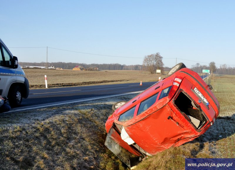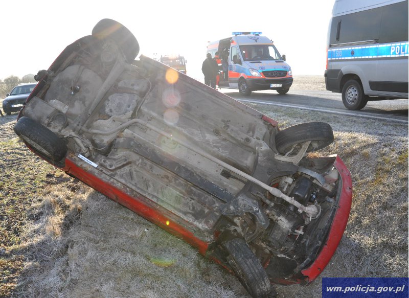 Piękna pogoda, słońce pomimo marca w kalendarzu. Jednak chwila nieuwagi, pośpiech i kolizja gotowa. W okresie zimowym często zmieniają się warunki atmosferyczne, które wpływają na pogorszenie warunków jazdy. O tym dziś w godzinach porannych przekonał się 19–letni kierujący fiatem panda. Młody mężczyzna jadąc drogą krajową nr 16 w gminie Kisielice nie dostosował prędkości do warunków panujących na drodze w wyniku czego doprowadził do wywrócenia pojazdu. 19-latek została zabrany do szpitala w Iławie. Na szczęście zakończyło się tylko na ogólnych potłuczeniach. Młody mężczyzna był trzeźwy. Został ukarany mandatem. Na czas wykonywania czynności ruch odbywał się wahadłowo. Policjanci ustalili, że mieszkaniec gminy Kisielice posiada prawo jazdy dopiero od 7 miesięcy.