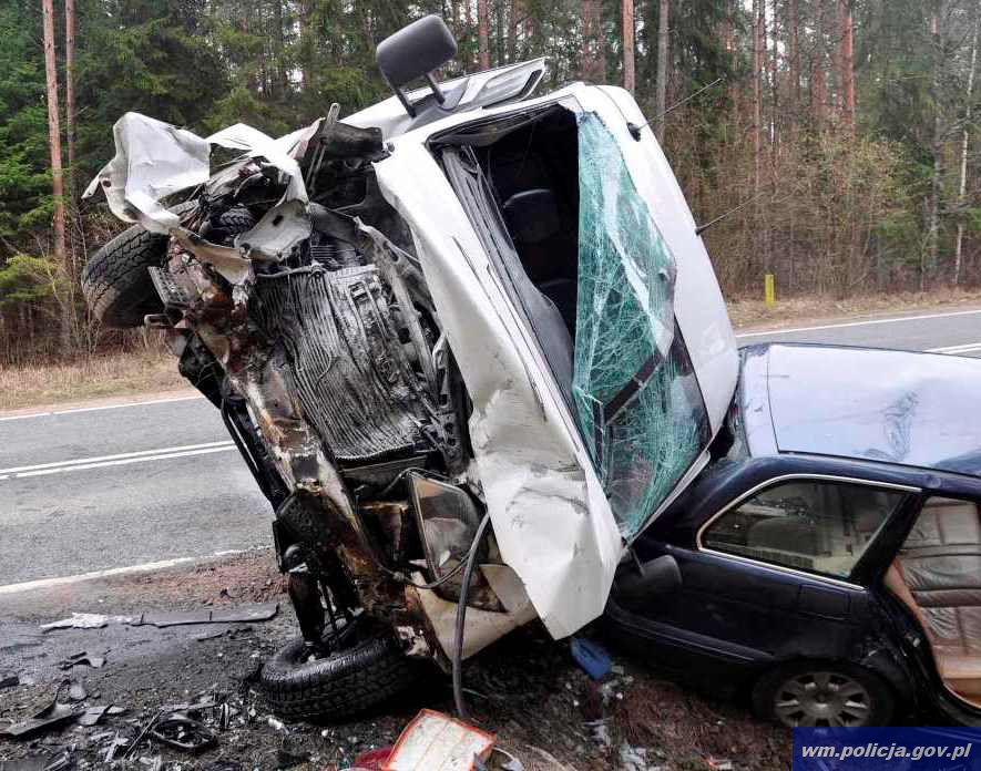 W niedzielę przed godziną 13.00 na trasie między Rucianem – Nidą, a miejscowością Zgon zderzyły się czoło dwa pojazdy. Ze wstępnych ustaleń policjantów wynika, że kierująca pojazdem marki BMW, 47-letnia mieszkanka gminy Ruciane Nida, jechała od strony miejscowości Zgon. Na łuku drogi prawdopodobnie mijała się z pojazdem ciężarowym. Podczas mijania kierująca najwyraźniej straciła panowanie nad pojazdem i auto wpadło w poślizg. BMW uderzyło w jadącego z przeciwka busa marki Mercedes.