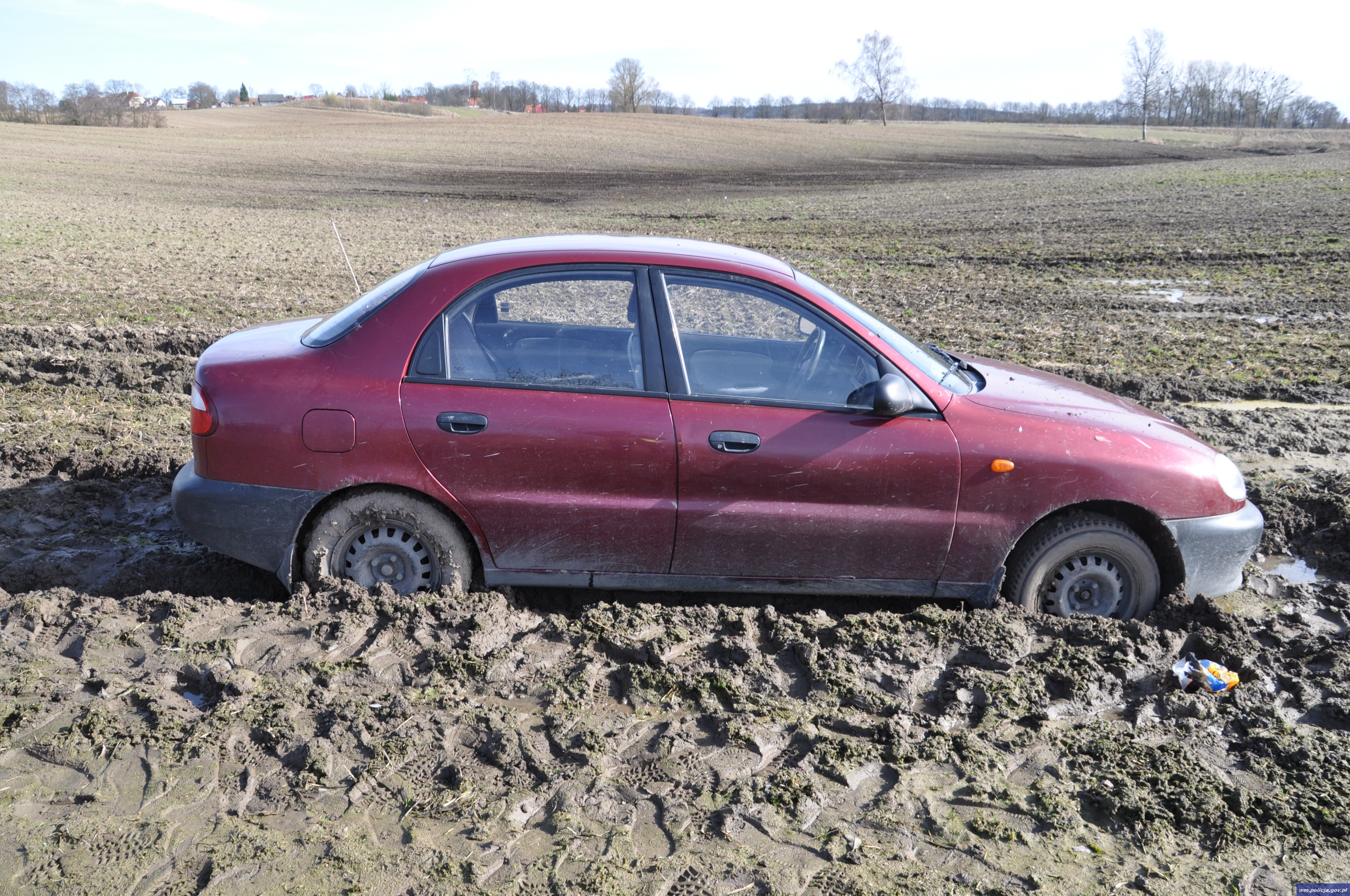 Kętrzyn: „Pożyczonym” samochodem zakopał się w błocie. Został zatrzymany