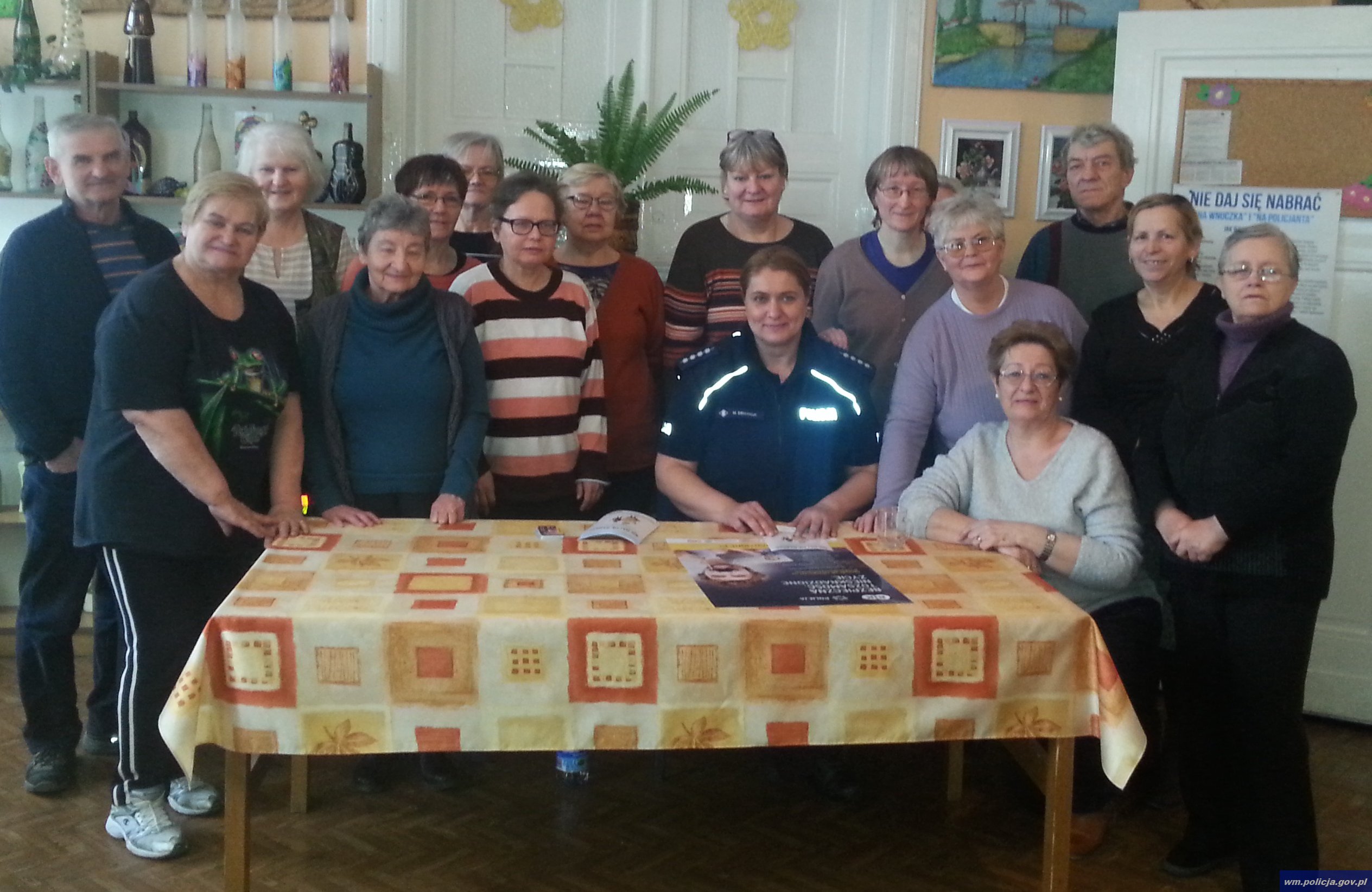 Policjantka uczyła seniorów jak żyć bezpiecznie i nie stać się ofiarą przestępstwa. Przestrzegała uczestników przed niebezpieczeństwami związanymi z ofertami telefonicznymi, tele - zakupami, katalogami, udziałem w loteriach. Słuchacze zostali również zapoznani ze sposobami ochrony przed agresywną lub nieuczciwą praktyką rynkową, ze szczególnym uwzględnieniem ochrony danych osobowych, umiejętności zachowań asertywnych oraz szanowania własnego podpisu. Uczestnikom zostały ponadto zaprezentowane sposoby stosowane przez oszustów w celu wyłudzenia pieniędzy, m.in. metoda „na wnuczka (sprawcy podają się za bliską osobę i proszą o pożyczkę, którą odbiera obca osoba) lub „na urzędnika” czy „na policjanta”.
