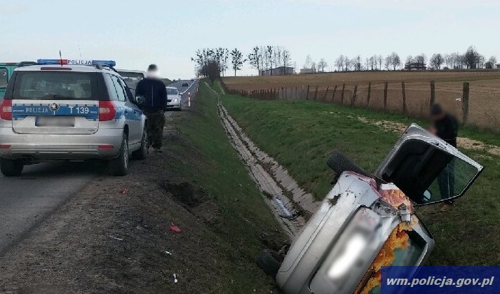 Policjanci z Barczewa pracowali na miejscu zdarzenia drogowego DK-16. Kierowca osobówki wyprzedzając kolumnę pojazdów, w celu uniknięcia czołowego zderzenia z pojazdem jadącym z naprzeciwka, nagle zahamował i próbował „schować się” między auta jadące prawym pasem. W wyniku tego manewru zahaczył o tył innego auta, dachował i wpadł do rowu. Mimo, że zdarzenie wyglądało dość poważnie to nikt nie odniósł obrażeń.